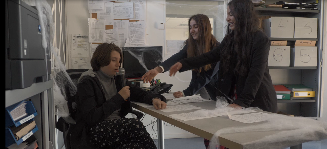 Les élèves de 3e du collège Pablo Neruda à Bègles ont réalisé des ateliers de pratique artistique autour de la réalisation d'un court métrage, en compagnie d'Alain Bergala de l'atelier Bergala.