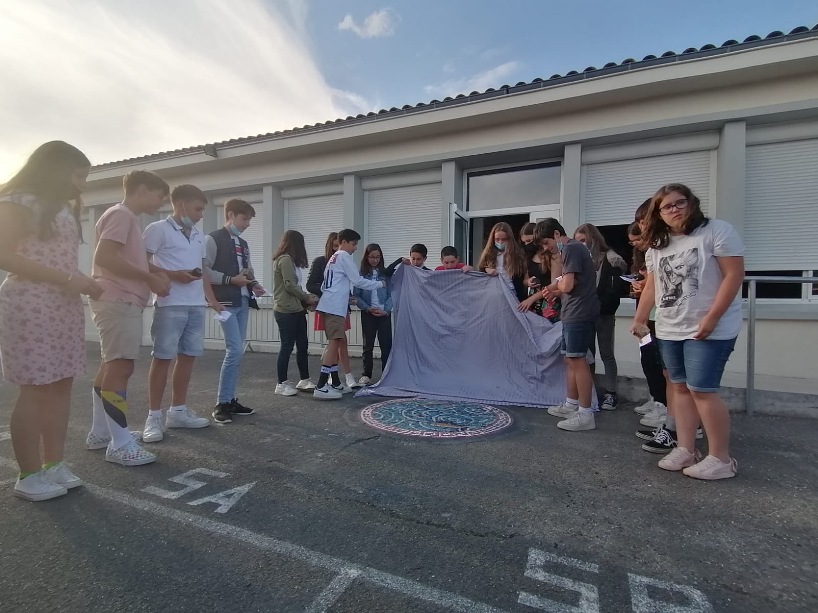 Enfin, les jeunes ont pu visiter une carrière d'argile où on leur a présenté les différentes étapes de la carrière au carrelage en terre cuite. Avec l'aide d'Emma Simon, les jeunes ont donc constitué une œuvre collective en mosaïque, dont ils ont pu faire l'inauguration au sein du collège devant leurs familles.