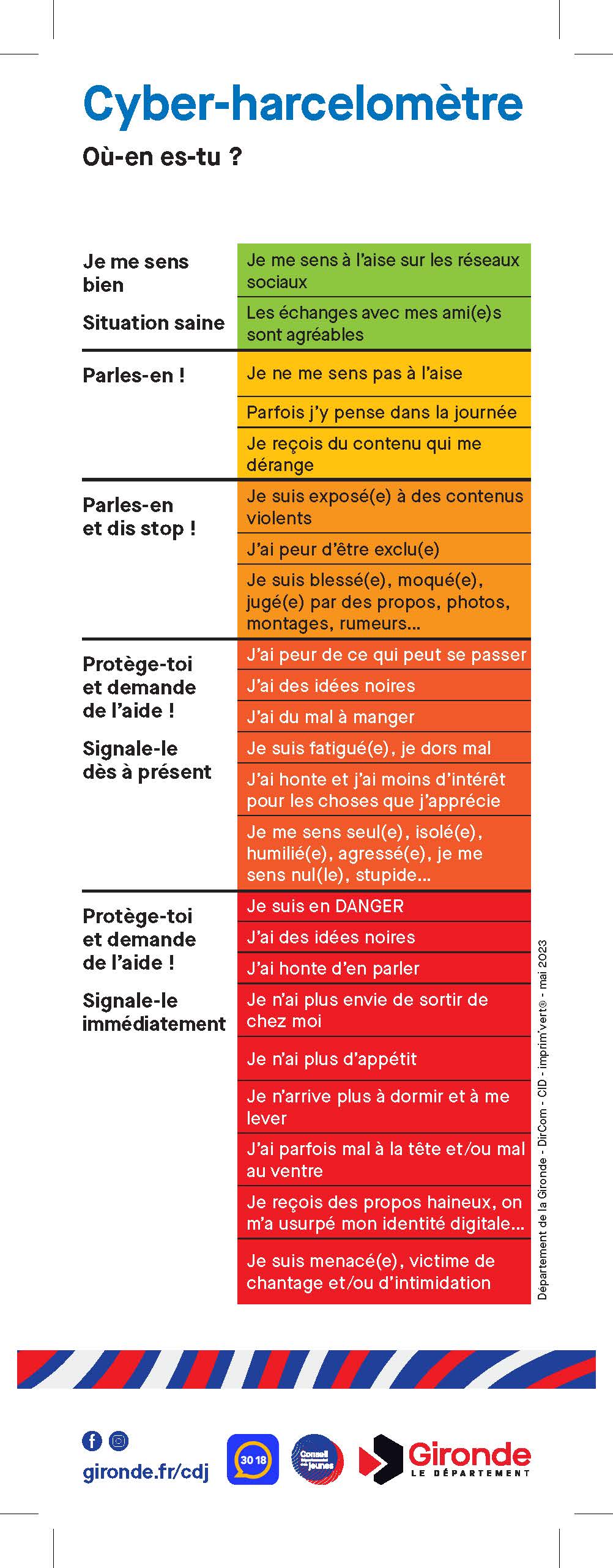 La commission Médias et usages numériques a quant à elle créé un cyber-harcelomètre pour apprendre à repérer les comportements violents et malsains. À découvrir ci-contre et en téléchargement en bas de cette page.