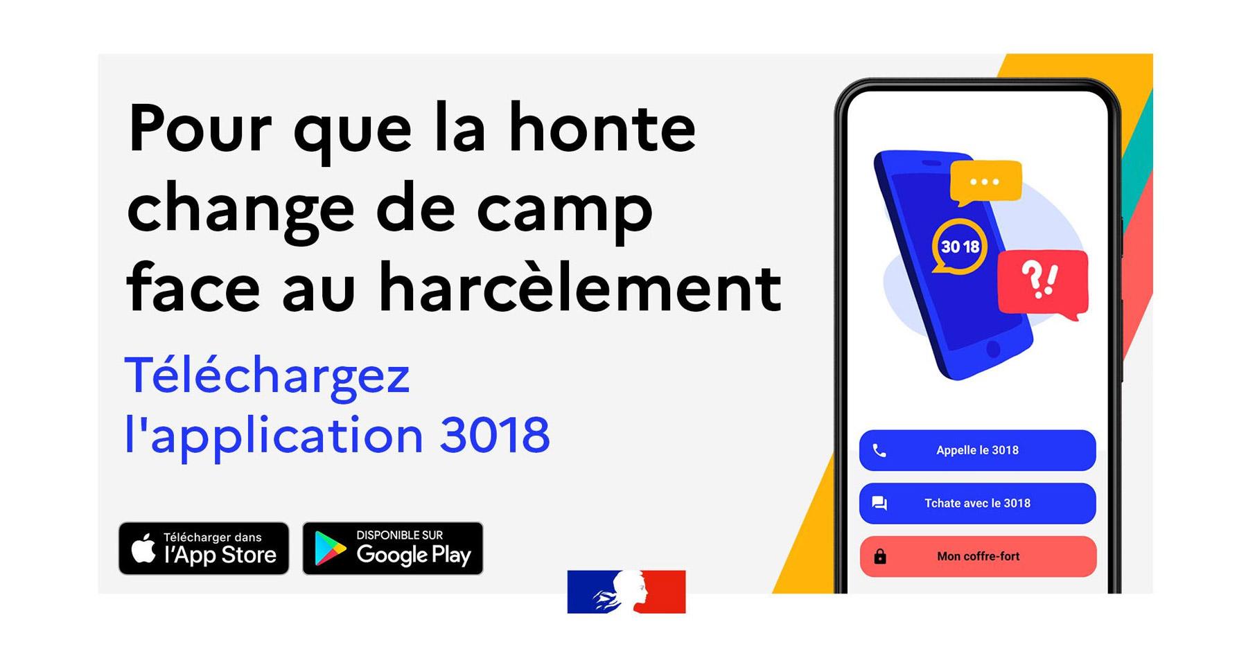 Une application 3018 est également disponible sur les plateformes iOS et Google Play avec un tchat, un questionnaire, des fiches pratiques ainsi que la possibilité de stocker des preuves.