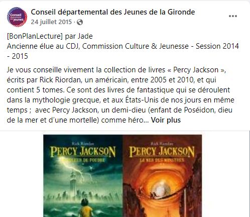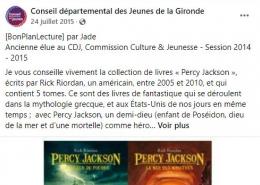 En 2014-2015, la commission Jeunesse et culture anime la page Facebook du conseil départemental des jeunes grâce à une nouvelle rubrique : les bons plans culture.