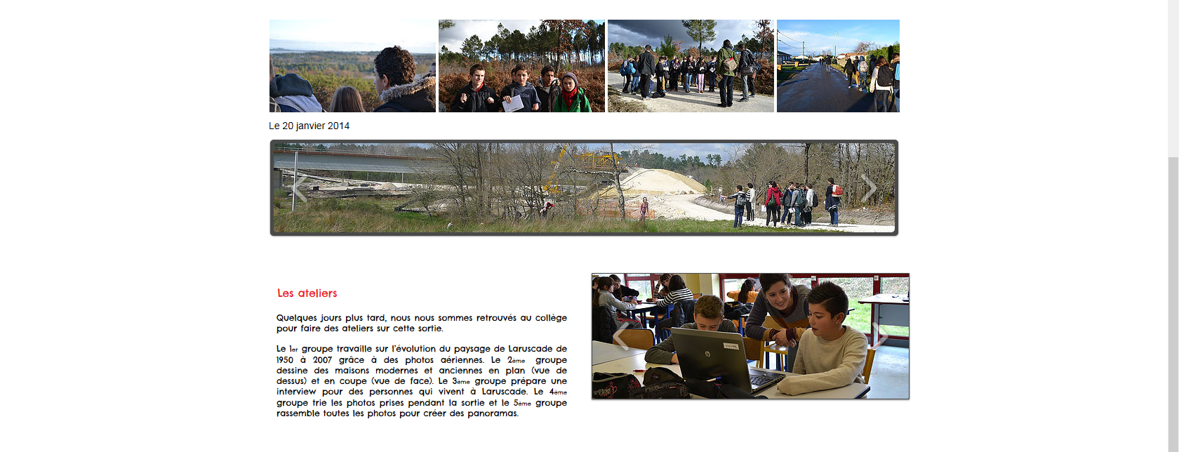 • Sur plusieurs années scolaires « photographies et analyses de la part des élèves concernant l’impact de cette infrastructure sur les hommes et les paysages », avec propositions d’aménagement pour le futur.