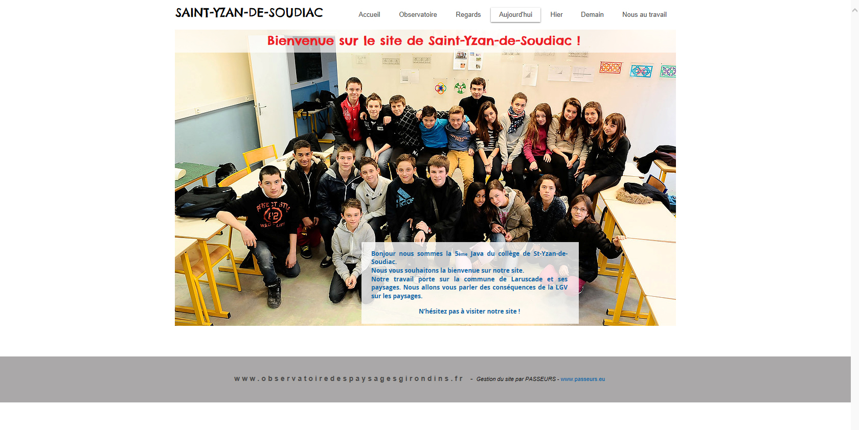 En partenariat avec l’association « Passeurs », les élèves de 5e du collège La Saye de Saint-Yzan-de-Soudiac ont réalisé en 2014 et 2015 un Billet Courant Vert Paysage avec l'observatoire de l’influence de l’implantation humaine sur le paysage.