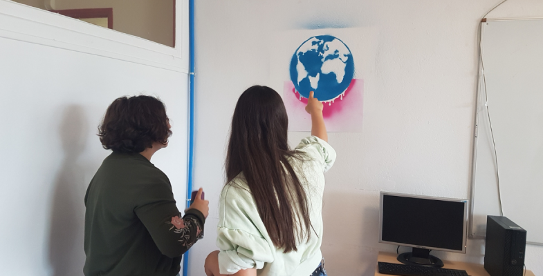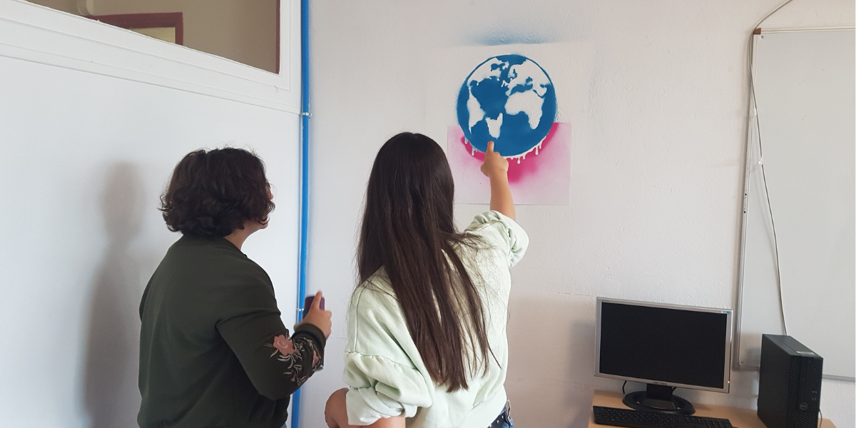 Afin de sensibiliser les élèves aux effets du réchauffement climatique et aux actions à mener pour en réduire les conséquences, les élèves ont créé des productions artistiques de street art sur la problématique suivante : "Comment créer un visuel au pochoir façon street art qui transmet l'idée qu'il faut lutter contre le réchauffement climatique ? "
