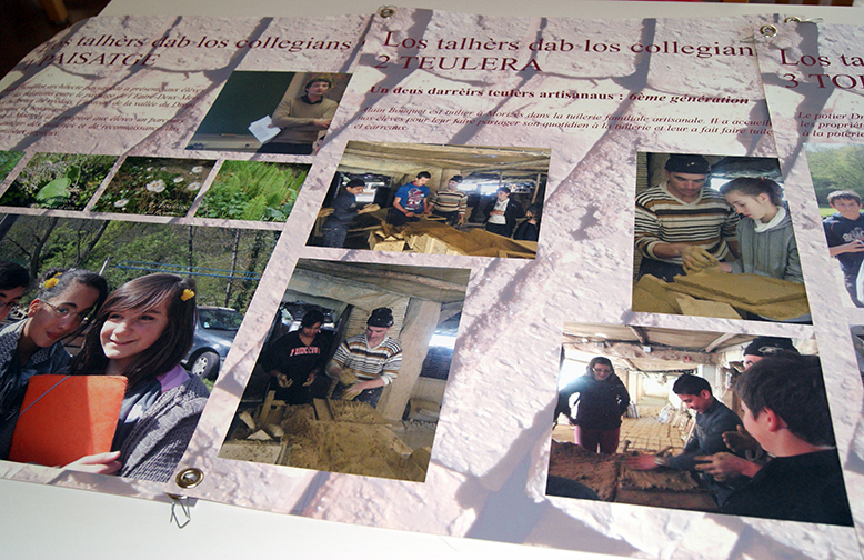 La valorisation des travaux scolaires intervient lors d’une journée occitane organisée avec la mairie à la bibliothèque de La Réole, sur le thème de l’argile et comportant une exposition commentée par les élèves (herbiers et objets cuits).