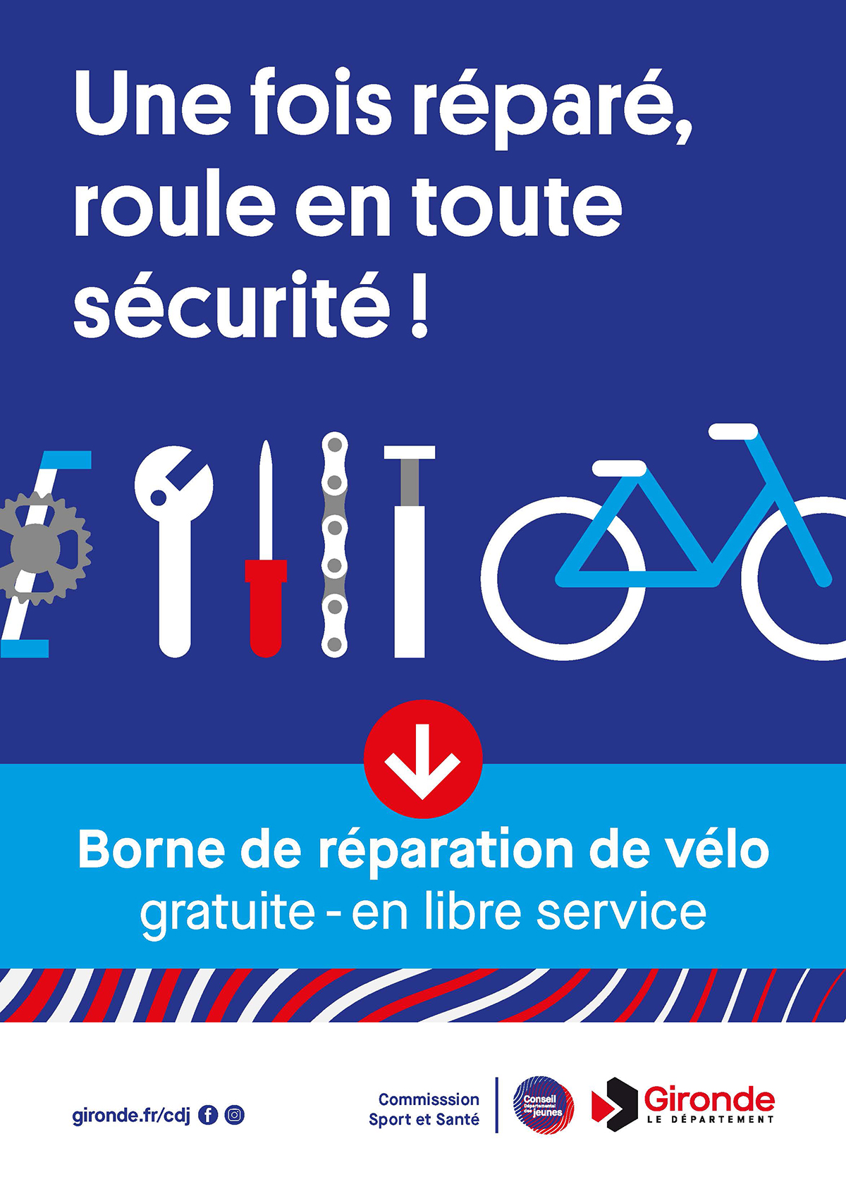 Ils ont proposé une affiche et un flyer à distribuer aux collèges ayant engagé une démarche de développement de la pratique cyclable : station de réparation sur place et flyer explicatif des outils indispensables à la réparation. À découvrir ci-dessous.