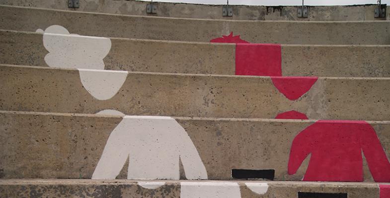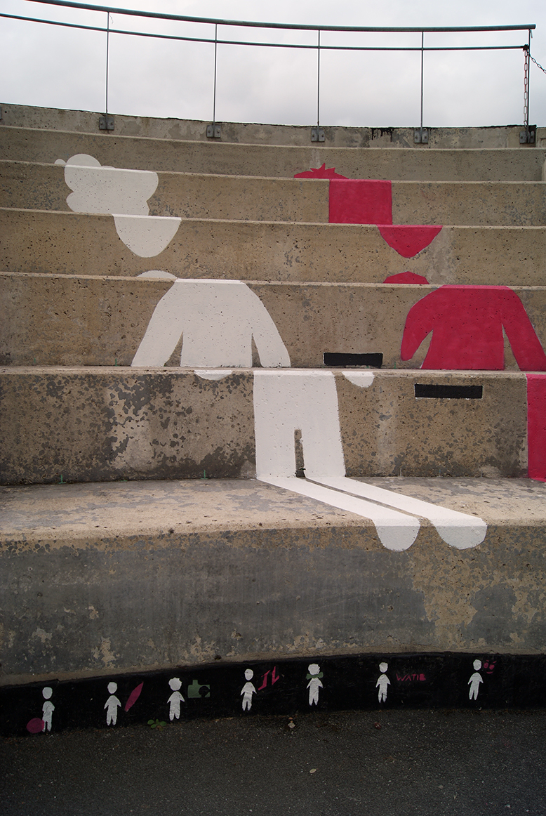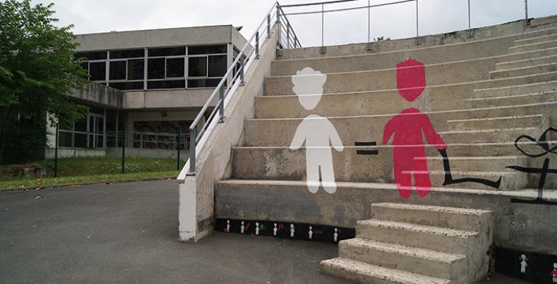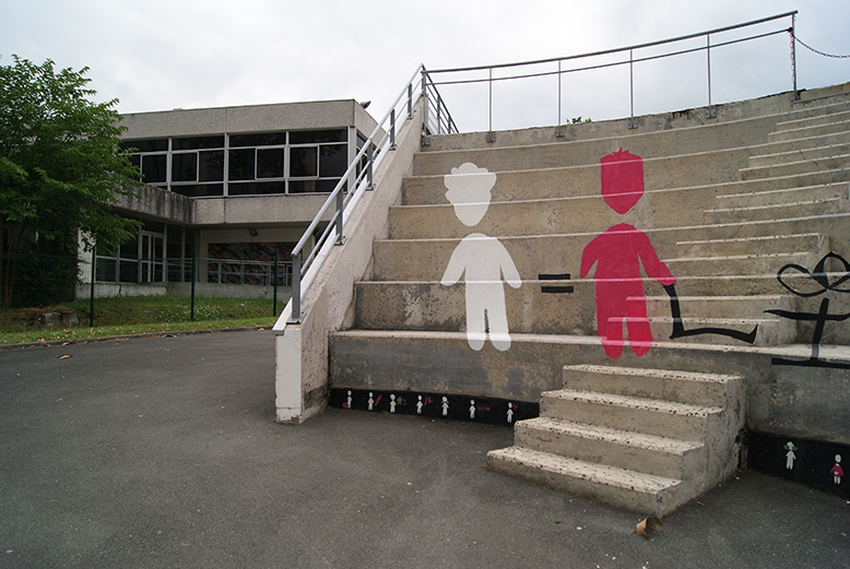 Afin de valoriser l’amphithéâtre du collège sur le principe de l’anamorphose, un projet pédagogique est confié au collectif « ça et là » en collaboration avec l’Association Friche and Cheap.