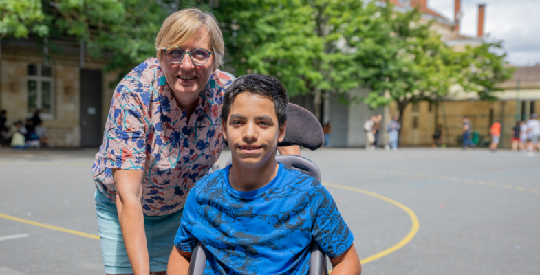 Alexandre, élève au collège Henri-Brisson de Talence, peut compter sur Pascale, accompagnatrice d’élèves en situation de handicap (AESH), pour faciliter son quotidien. Ensemble, rien n’est impossible, même pas l’ascension du phare de Contis.