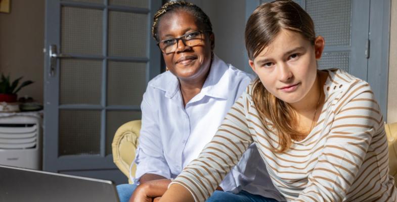 Delphine Mvie-Drouillard, assistante familiale, accueille chez elle à Saint-Yzan-de-Soudiac, Clara 14 ans. Très bonne élève au collège Val-de-Saye, elle bénéficie depuis un an d’un ordinateur portable fourni par le Département. Outil précieux pour étudier…