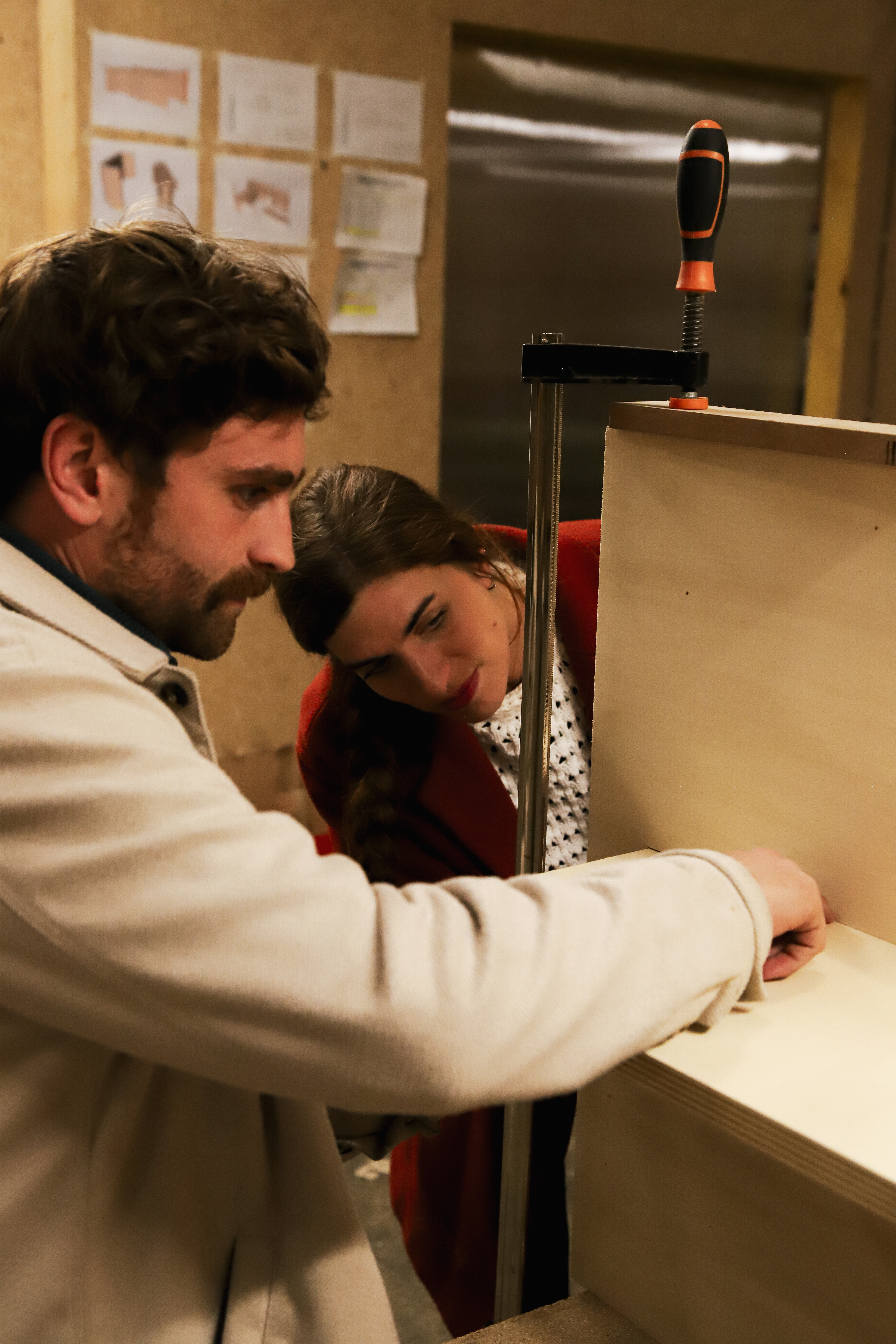 Nathalie Giraud et Bastien Carretier, à peine plus de 60 ans à eux deux, se sont rencontrés autour de la transition écologique et de l’économie circulaire. Elle était architecte, lui construisait des décors de cinéma. À deux, ils ont fondé Gimmic design en 2022, installé aujourd’hui dans le quartier de Bacalan à Bordeaux. Dans un ancien entrepôt de l'usine de sucre Béghin Say, l’atelier fait partie de la Cité bleue et occupe 400 m² de la nouvelle halle créative.