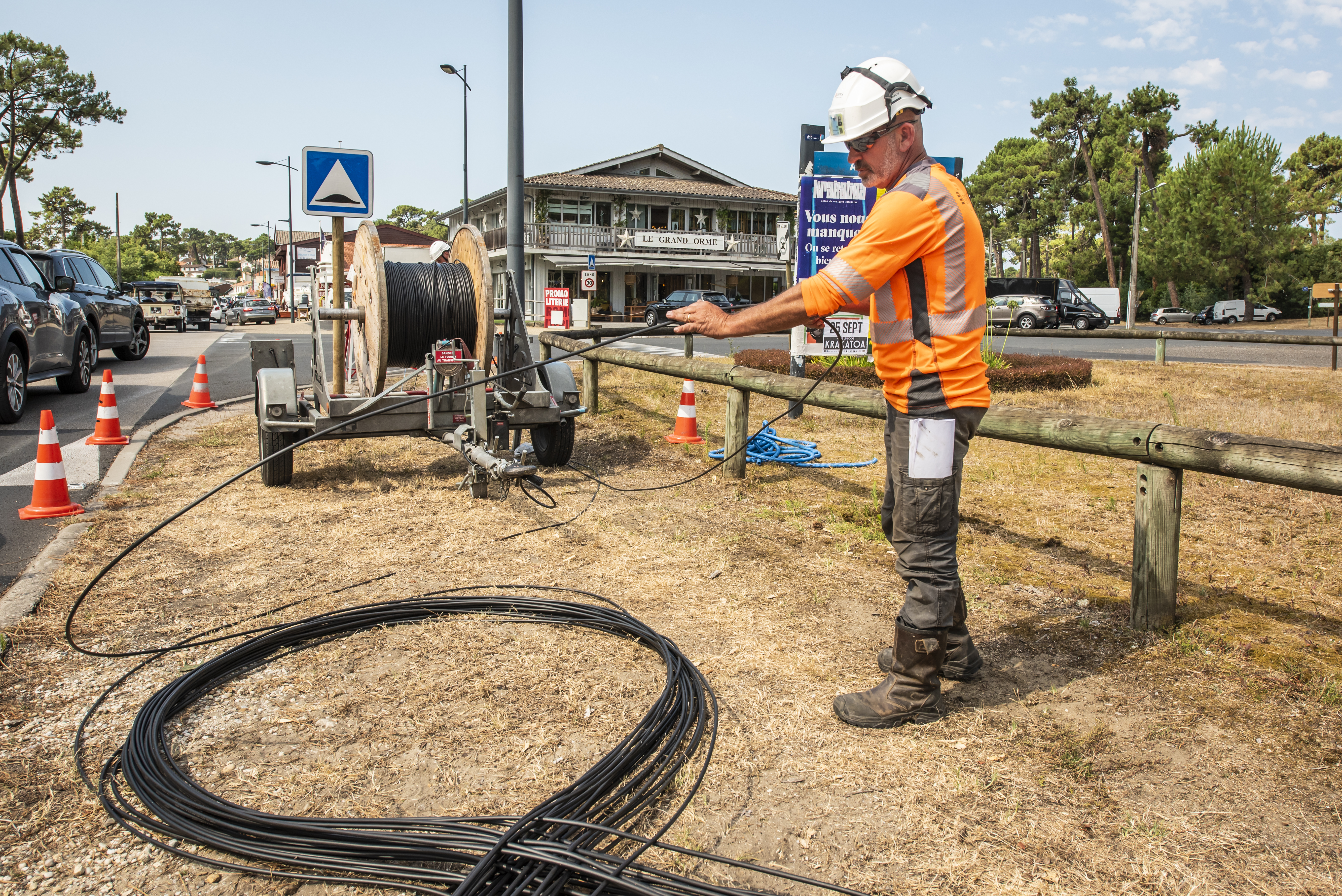 Grâce à Gironde Numérique, à son délégataire Gironde Très Haut Débit et aux communautés de communes, le Département déploie la fibre optique sur le territoire girondin. 38 000 km de fibre, ce sont 500 emplois sur 1 400 chantiers menés par 7 entreprises sous-traitantes.