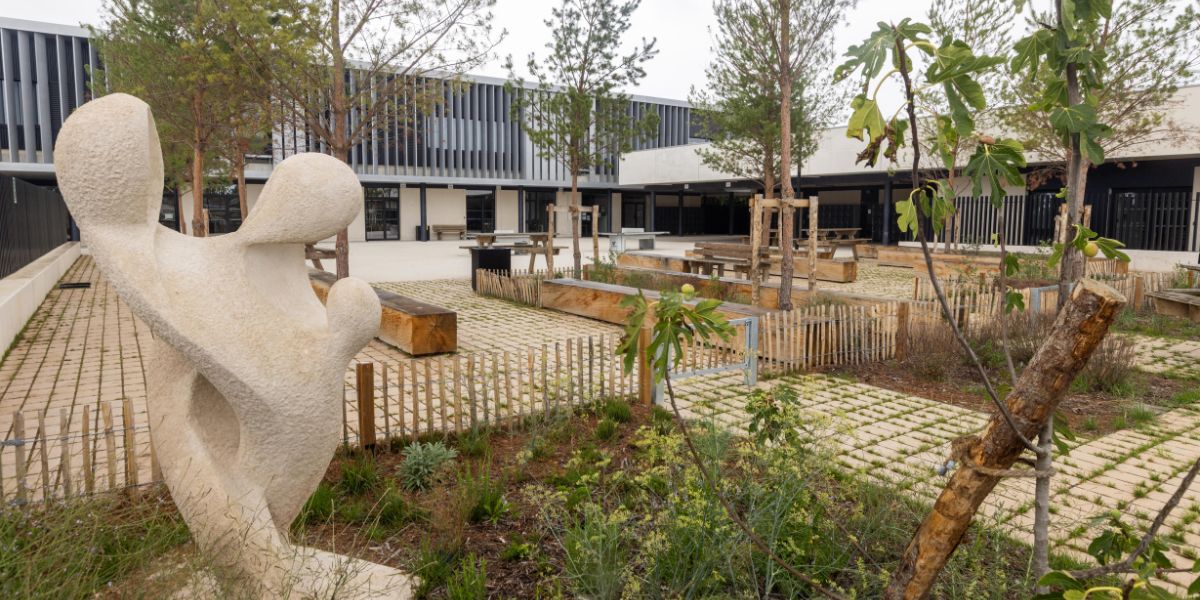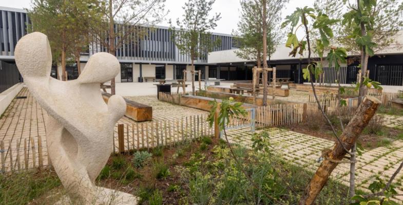 Par ailleurs, l’œuvre de l’artiste Daniel Monnier, réalisée dans le cadre du 1% artistique et restaurée, prend désormais place dans la nouvelle cour végétalisée.