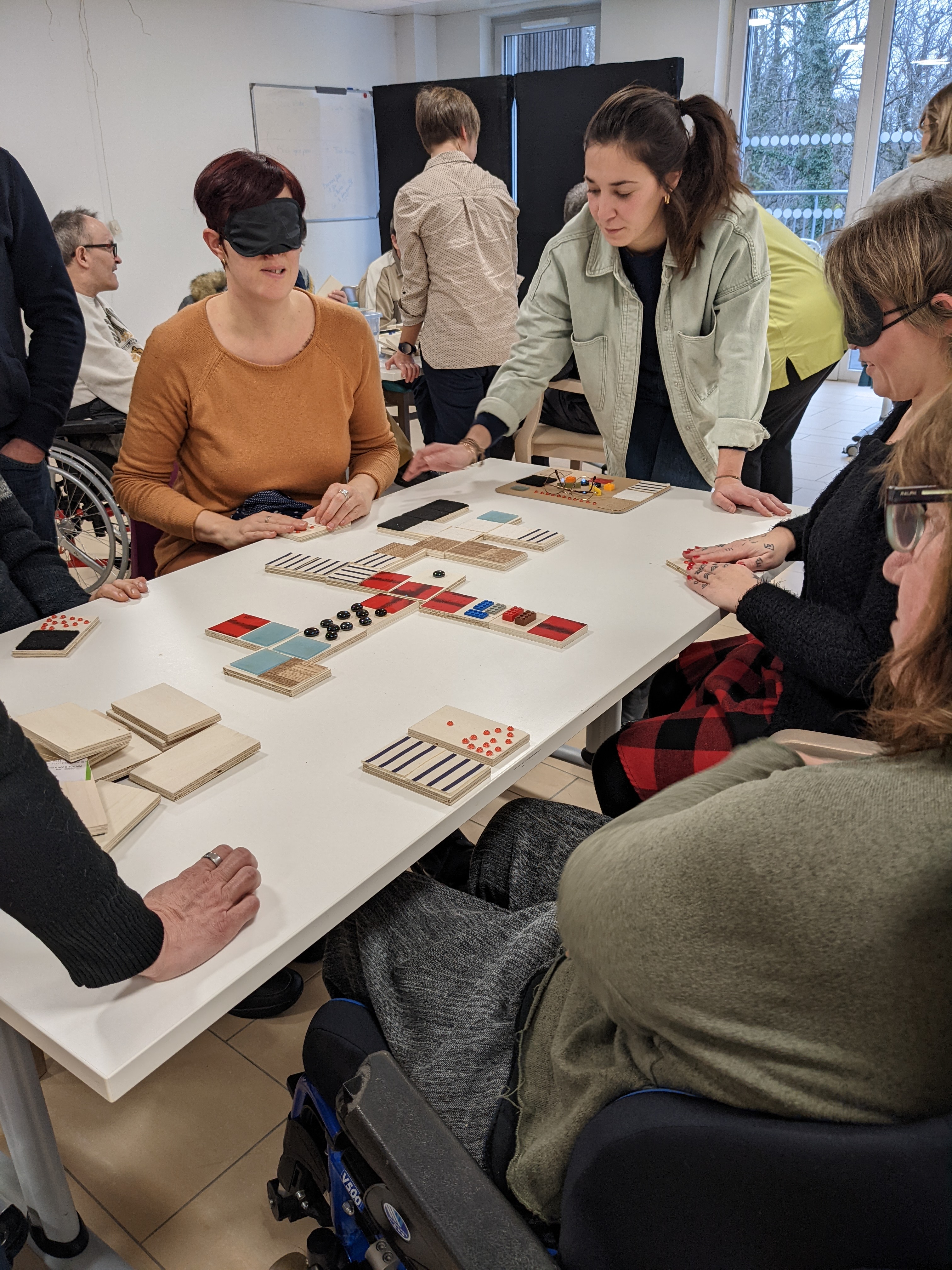 Dans le cadre du projet "L'un est l'autre", la Maison d’accueil spécialisée « LADAPT » de Camblanes-et-Meynac et la ludothèque « Kaléidoscope » ont mis au point avec les résidents un jeu de dominos spécialement adapté aux handicaps.