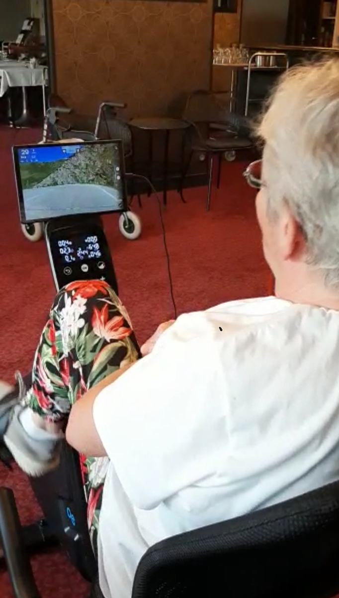Sur des vélos connectés à une application, les personnes âgées ont ainsi pédalé toute l’année aux quatre coins du monde ! Plage, forêt, Mexique ou Tanzanie ? Elles ont roulé dans de magnifiques paysages projetés. Evasion, souvenirs, récits et anecdotes ont rempli les échanges des aînés, mais aussi de leurs soignants et de leur famille, tous invités à pédaler avec eux pour additionner les kilomètres, tous à égalité devant l’effort et le partage.