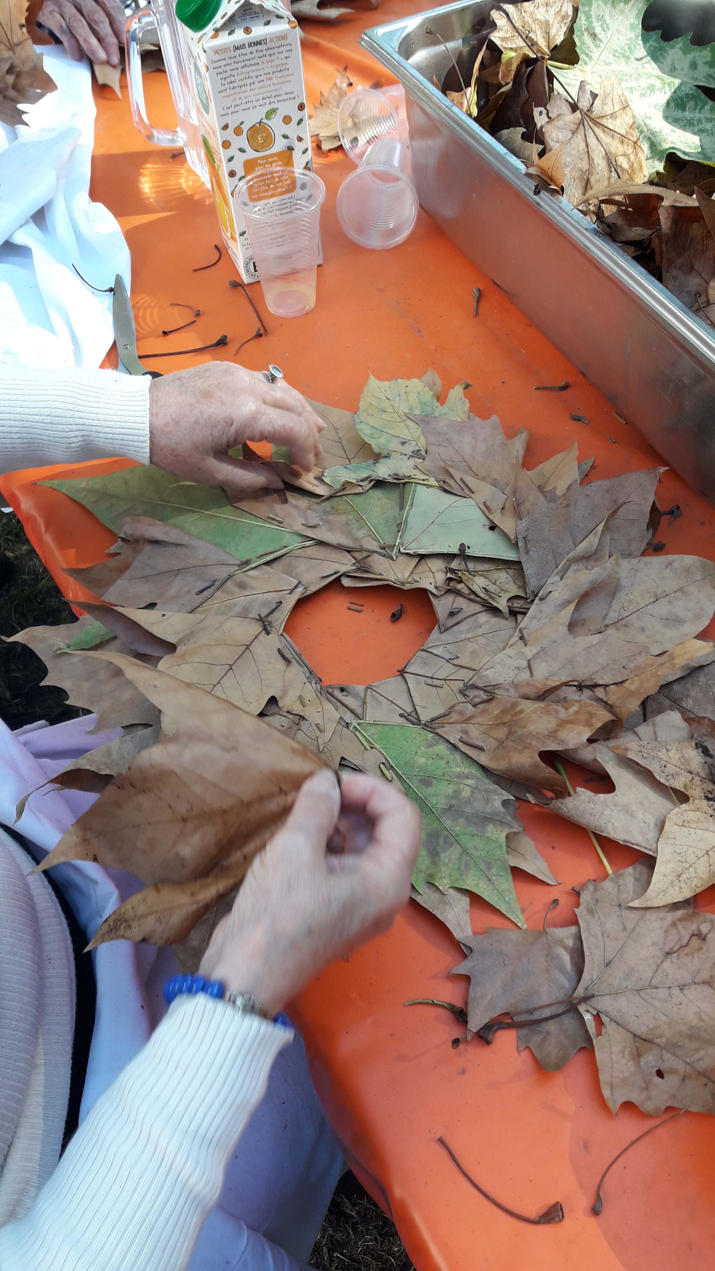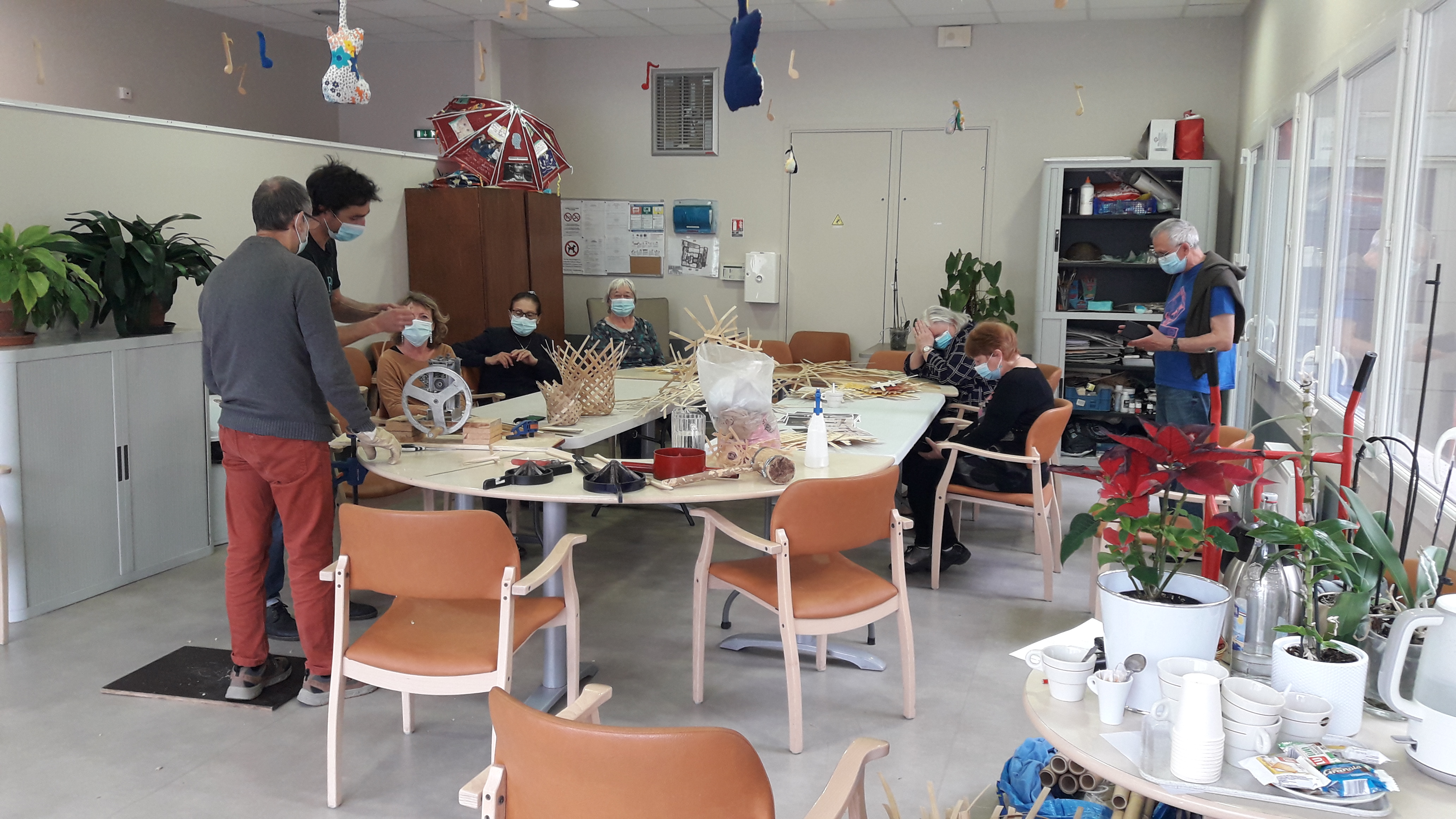 - En automne, la chute des feuilles des platanes a permis de s’essayer à la couture de feuilles séchées et de faire naître des formes selon l’imagination de chacun. Les participants ont aussi découvert le travail du bambou, et ont pu s'initier à diverses techniques : sphères en bambou, tissage avec la fibre de bambou...