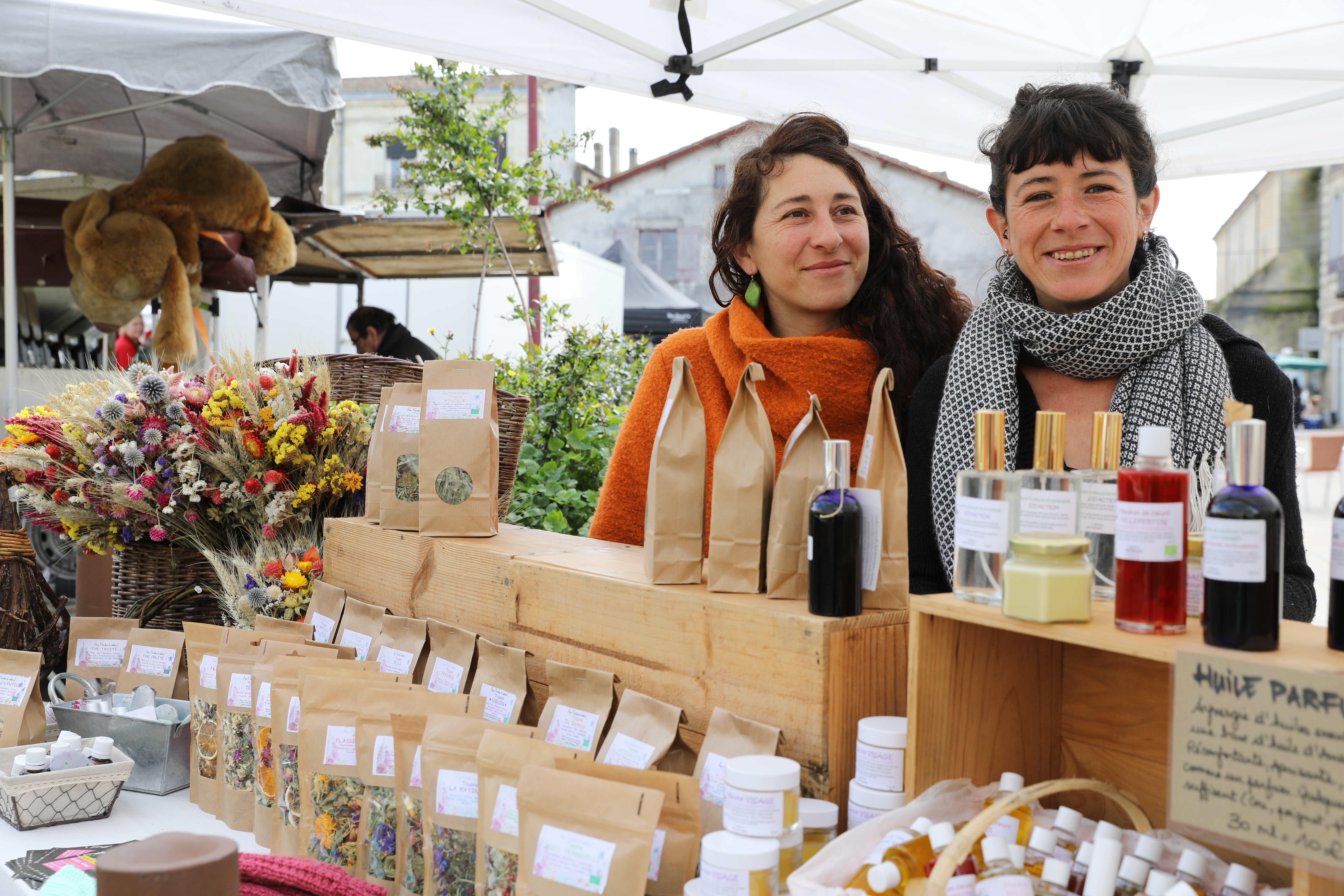 Aux herbes et cetera qui accueille le public dans le cadre d’un ancien séchoir à tabac, leur permet de montrer comment elles travaillent à l’atelier mais aussi de vendre préparations et tisanes.