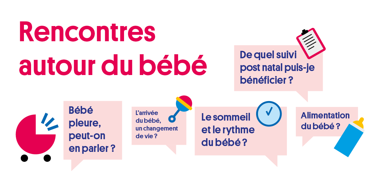 Venez participer à un temps d'échange autour des différentes questions que vous vous posez sur votre bébé : alimentation, pleurs, sommeil et bien d'autres sujets.