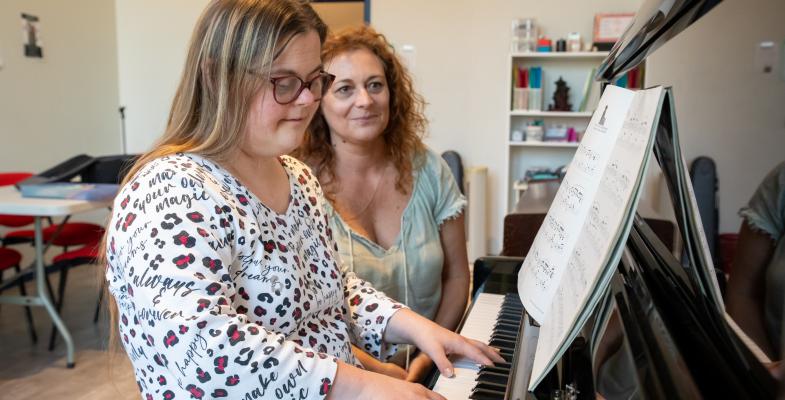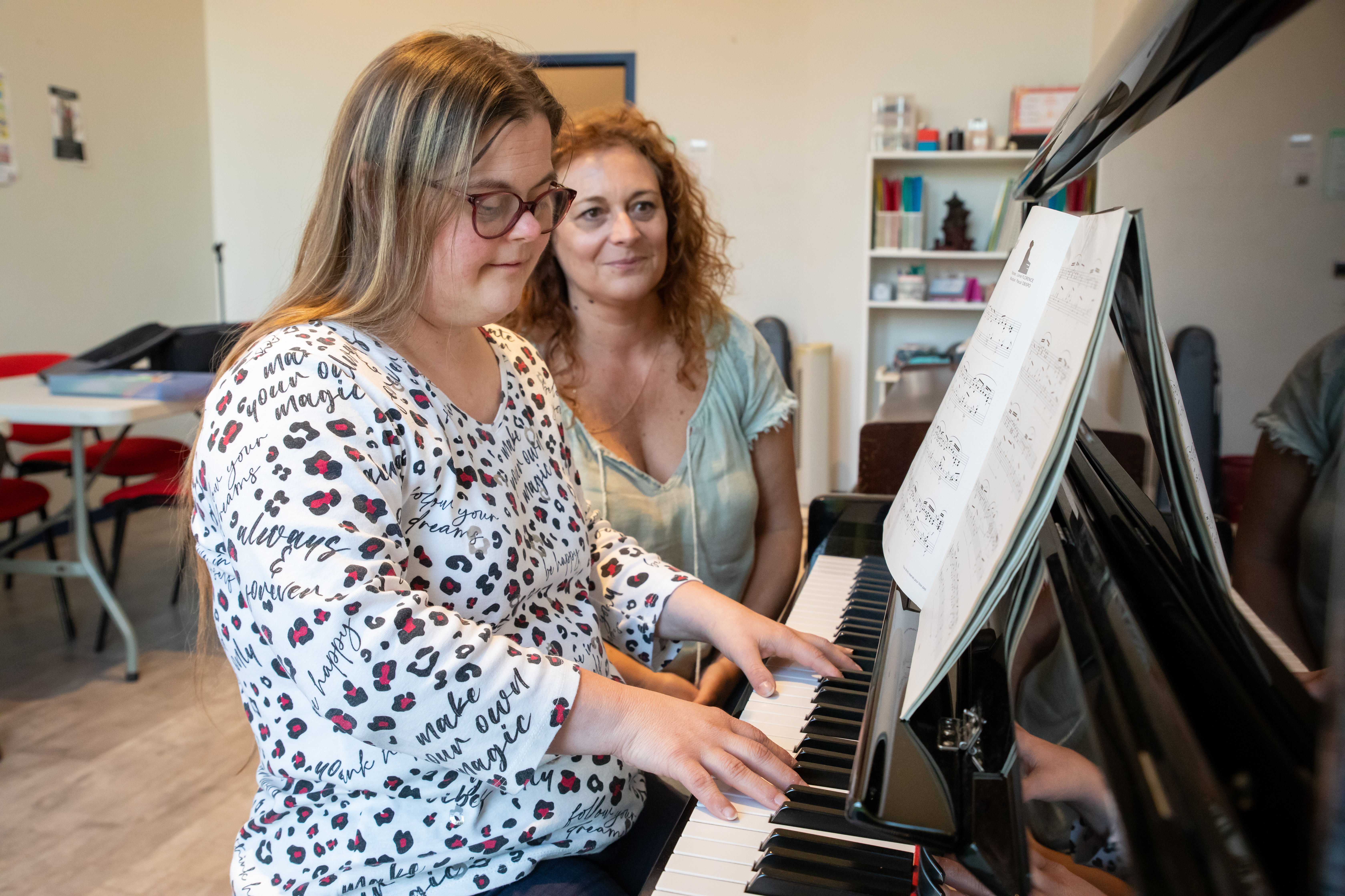 Il y a 7 ans que Martine Fresquet, cheville ouvrière de Music Adapt, a transmis sa fonction de référente handicap à Delfine Gasquet, professeure. Le cadre d’emploi n’existe pas dans la convention collective, pas de financement spécifique non plus pour le poste, mais des heures de décharge de cours pour l’accueil des familles, le suivi du parcours des élèves en situation de handicap, l’adaptation des partitions ou la création de supports pédagogiques… et surtout, beaucoup d’implication de Delfine dans sa mission.