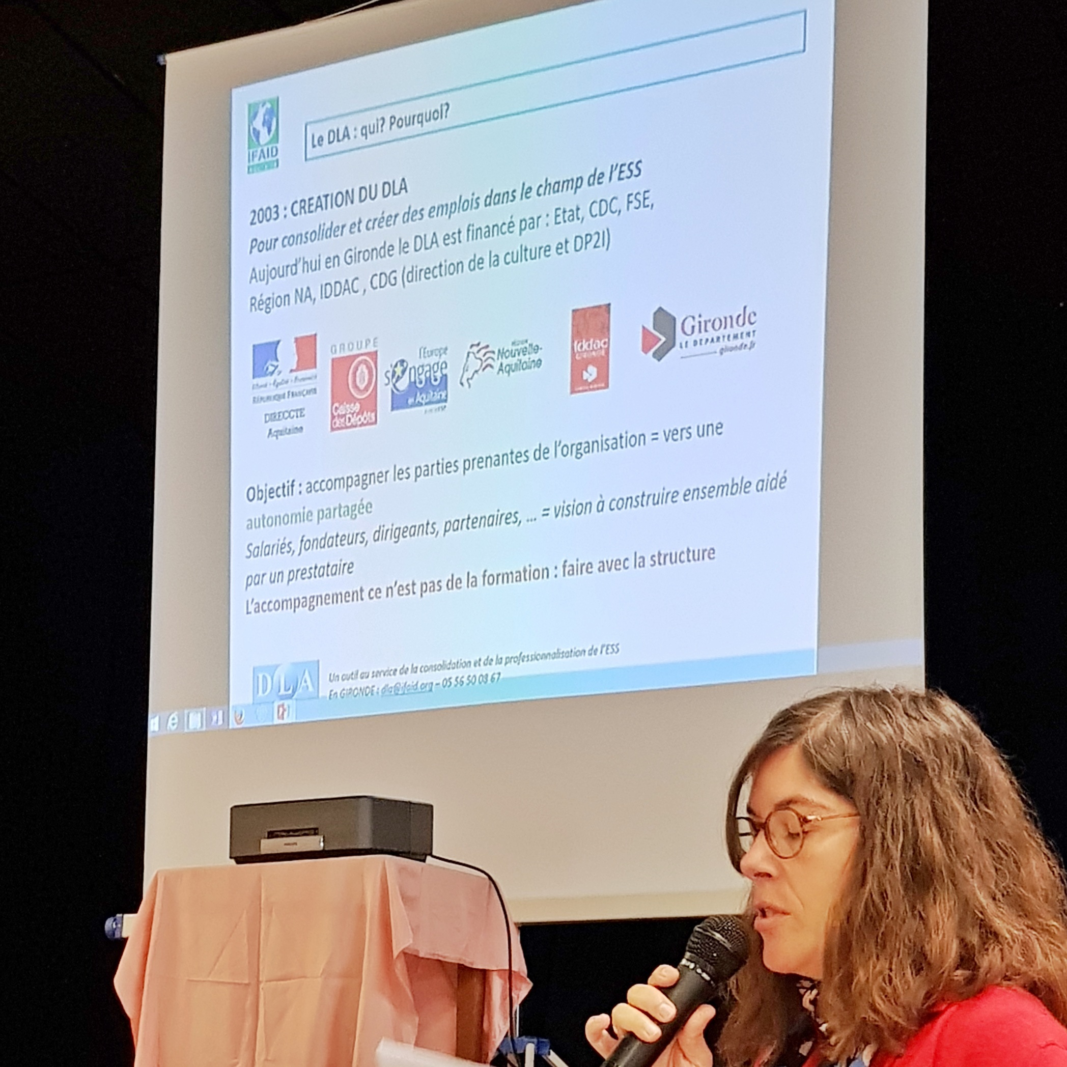 Le dispositif local d’accompagnement (DLA) est destiné à apporter un soutien au monde associatif. Outil de droit commun, il est financé par l’Europe avec le Fonds social européen, l’État via la Caisse de dépôt et de consignation, la Région et les Départements. Il permet d’accompagner tous les secteurs professionnels social, culture, sport, éducation populaire, etc. En Gironde, il a été particulièrement développé depuis 2008 en direction des associations culturelles, une année où la question de la refonte du statut des intermittents du spectacle a mis au jour des problèmes spécifiques aux acteurs locaux de la culture et des arts.