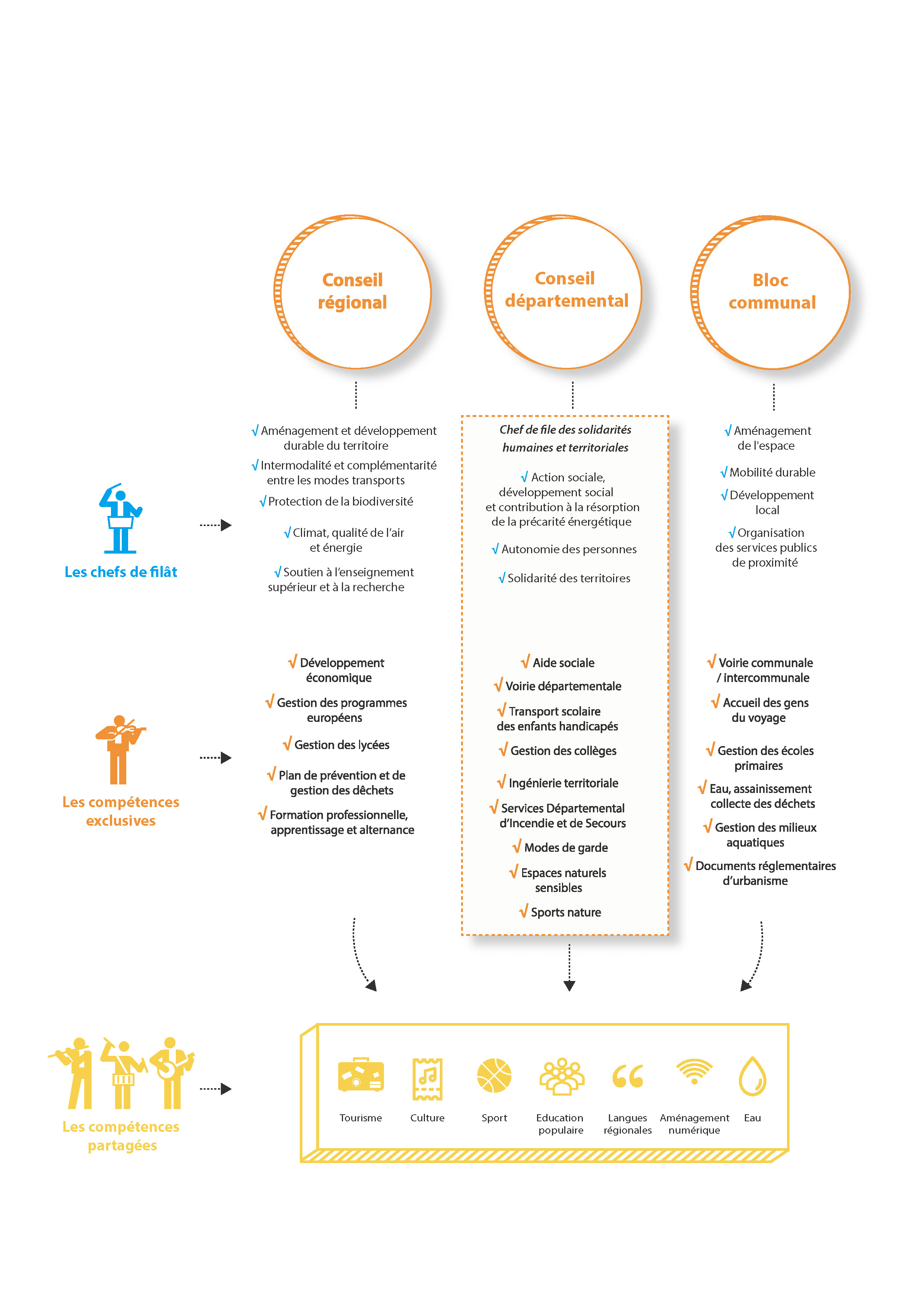 La notion de chef de filât des collectivités pour les échelons régionaux et départementaux se substitue à la clause de compétence générale que la loi NOTRe a supprimée. Elle vise une spécialisation de chaque niveau de collectivité territoriale et permet de clarifier "qui fait quoi", d'harmoniser les politiques publiques entre les différents échelons, et d'éviter des dépenses inutiles lorsque plusieurs niveaux de collectivités se concurrencent sur un même domaine d'action.