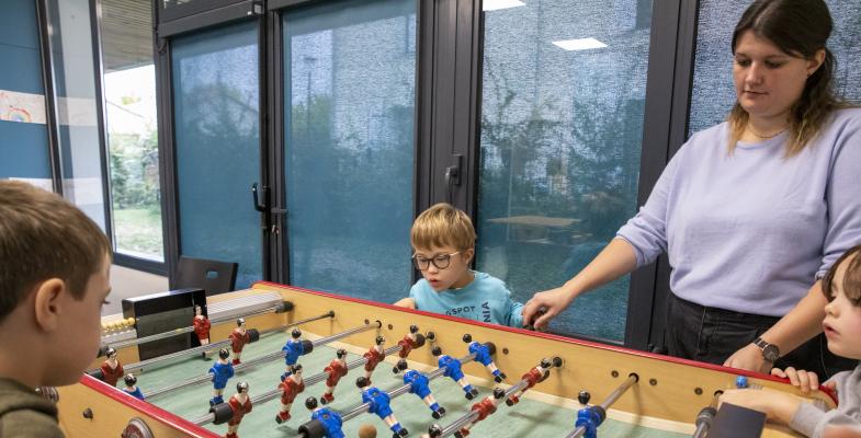 La CDC gère en direct tous les salariés et les équipements liés à l’enfance, la petite-enfance et la jeunesse. Parmi eux, deux sites pilotes à Latresne et à Saint-Caprais-de- Bordeaux, accueillent tous types de handicaps. Ce mercredi-là, Raphaël, porteur de trisomie 21 et scolarisé en classe ULIS, est en adaptation au CLSH de Saint-Caprais. Cette parenthèse partagée promet à la maman un court répit indispensable dans son rôle d’aidante. À peine arrivé, Raphaël joue déjà au baby-foot avec les autres enfants. L’association Uniques de Créon les a tous sensibilisés au handicap et a formé les animateurs à l’accueil inclusif. Élus et professionnels sont convaincus que les regards changent et que la société évolue, qu’elle s’ouvre aux personnes en situation de handicap, mais qu’il faut rester attentif et accompagner ce mouvement toujours fragile en laissant une grande place aux familles, aux citoyens, et en créant un réseau coopératif d’acteurs locaux.