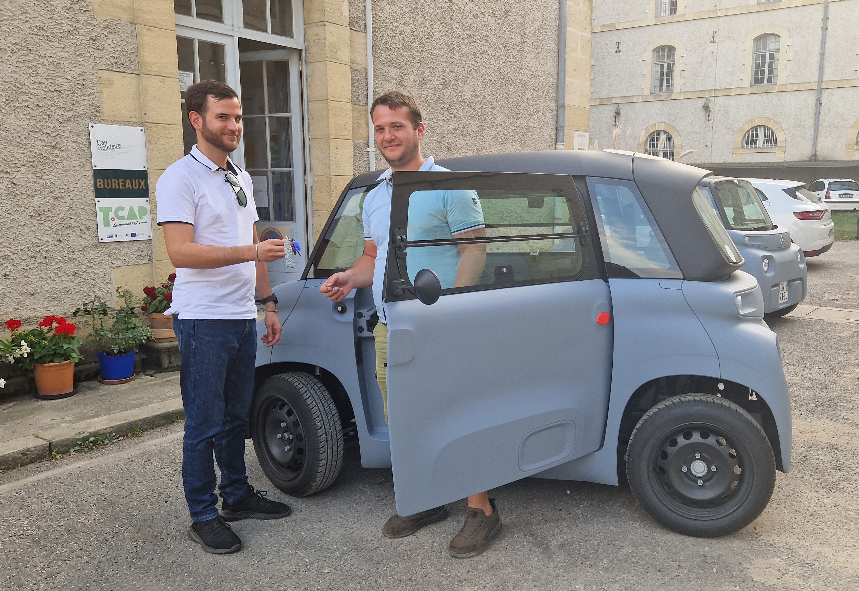 Et il roule ! Alternant à l’école de la Tour blanche à Bomme en première année de BTS Œnologie, il parcourt 22 km à vélo chaque matin et chaque soir pour aller de son nouveau domicile – un appartement à Langon – chez son employeur à Saint‑Laurent-du-Bois. Aspirant à faire ses nombreux trajets en voiture, il a passé le permis AM (Apprenti motocycliste) et s’est vu proposer une location de voiture électrique sans permis par T-CAP. Volontaire, il paie la location de 110 euros pour un mois renouvelable et, pendant ce temps, va reprendre des leçons de conduite pour tenter d’obtenir son permis.