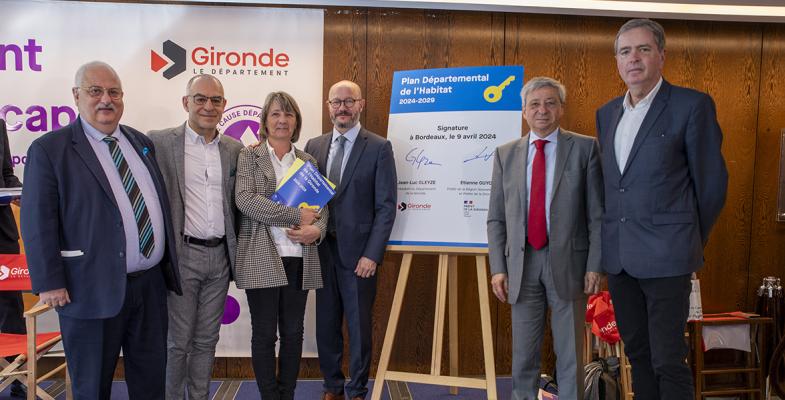 Le Président du Département et le Préfet ont signé, lors de la Journée Girondine de l'Habitat en avril 2024, le nouveau Plan Départemental de l'Habitat 2024-2029, véritable feuille de route collective de la politique départementale en matière d'habitat. Élaboré sur la base d'un bilan du précédent Plan Départemental de l'Habitat (PDH) et d'un diagnostic partagé avec les territoires et les acteurs de l'habitat, ce nouveau PDH entend répondre aux besoins en logements des territoires et des différents publics tout en prenant mieux en compte les enjeux environnementaux et d'équilibres territoriaux.