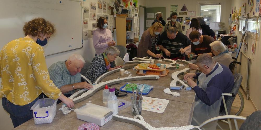 L'artiste Anne-Laure Boyer a mené des ateliers au sein de la Résidence autonomie Lou Saubouna de La-Teste-de-Buch afin de comprendre comment une œuvre d’art pouvait recréer du lien et faire émerger des souvenirs. Un vernissage de l’œuvre a été proposé en septembre au sein de la résidence, un beau moment, riche en partage.