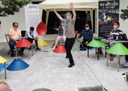 À la fin de l’année scolaire, tous les participants ont été conviés pour un temps de rencontre convivial et festif à la Salle des Fêtes du Grand Parc et ont pu présenter la vidéo finale et mettre en place une exposition photo dans l’espace public sur le Grand Parc et au-delà.