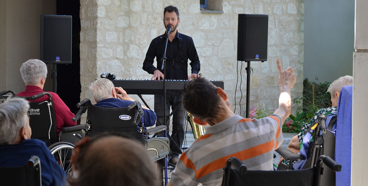 En 2019, des rencontres mensuelles avec le musicien-conteur Julien Bonamy de la Cie Le Dire autrement se sont tenues à Blaye avec des résidents de trois structures (2 EHPAD et 1 résidence autonomie) pour partager bribes de vie, chansons et cafés chauds.