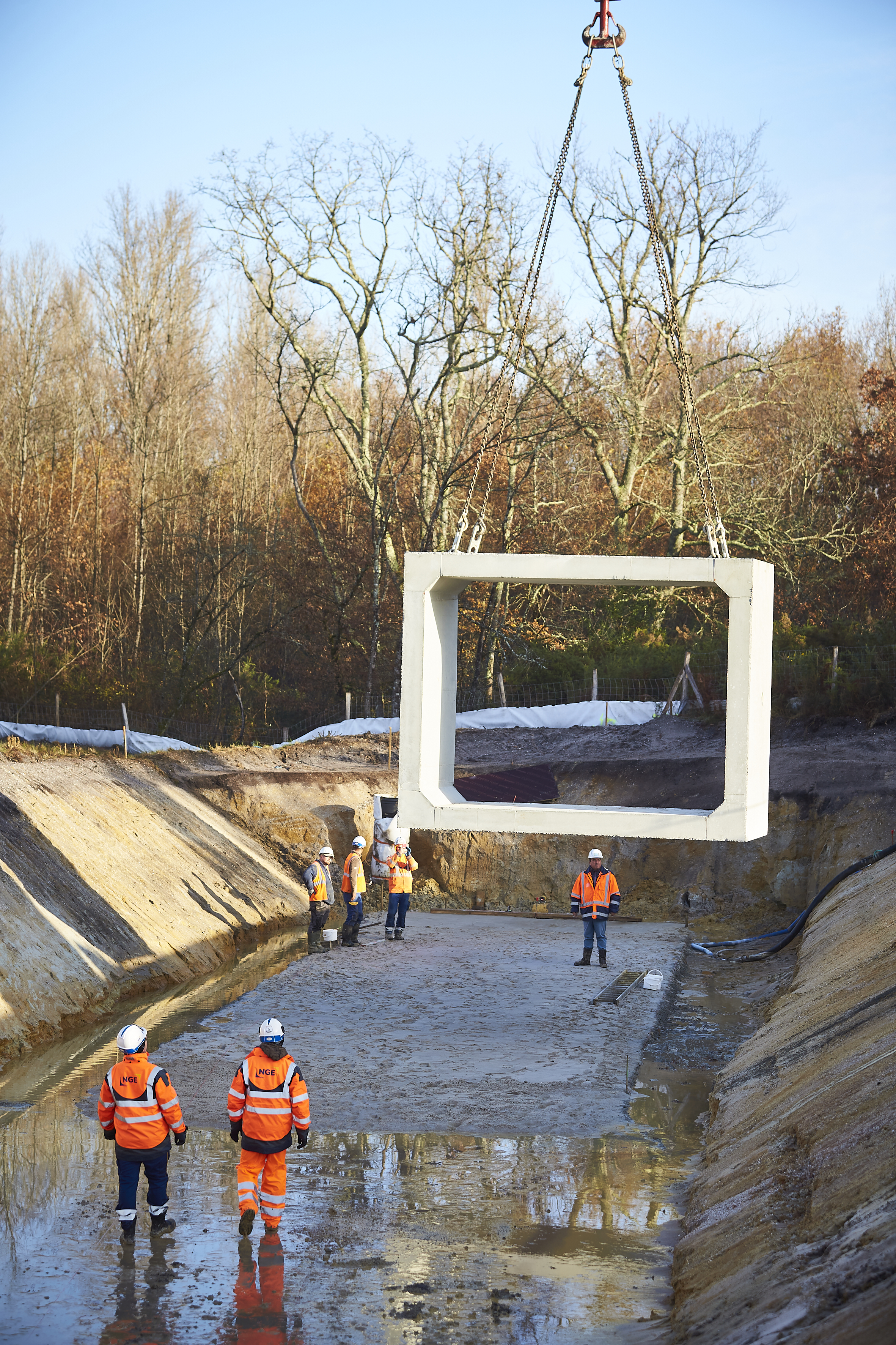 - Rétablissement des continuités écologiques : les 10 tunnels hydrauliques souterrains créés tous les 450 m permettront le passage des chauves-souris mais aussi de la faune semi-aquatique. Des haies ont été plantées à côté de ces ouvrages pour y guider les chauves-souris. Chaque tunnel est équipé de banquettes placées en hauteur le long des parois pour permettre le passage de la faune à sec en période de hautes eaux.