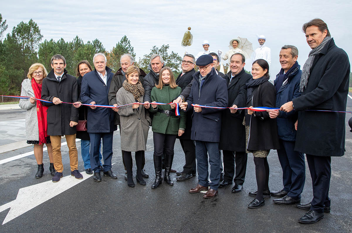 Pour sa réalisation, la RD 1215 a été préalablement réaménagée sur 2 km au sud, au Taillan-Médoc.