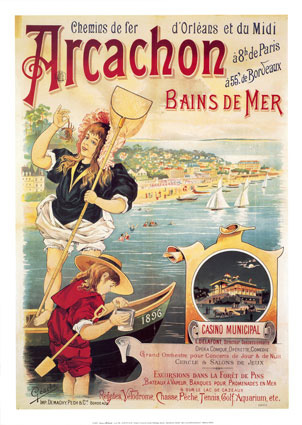 Alors qu’en Gironde le littoral est encore perçu comme une frange mouvante et dangereuse, une autre représentation de la mer s’élabore, d’abord en Angleterre puis progressivement dans toute l’Europe, portée par le courant hygiéniste qui se développe dans la seconde moitié du XVIIIe siècle. À Lewes, le Docteur Richard Russell prescrit à ses patients l’utilisation médicale des bains d’algues et d’eau glacée dont il vante les vertus purgatives, vivifiantes et cicatrisantes. En 1730, il fait construire à Brighton, petit village de pêcheurs du Sud de l’Angleterre, un établissement de bains qui attire rapidement la bonne société londonienne (elle recevra en 1783 le patronage du futur roi Georges IV) attirée par cette nouvelle mode des bains thermaux aux vertus médicinales. Ce courant hygiéniste, lié à la médicalisation de la mer, se développe en France dans la première moitié du XIXe siècle, porté par les classes aristocrates et bourgeoises, les seules à pouvoir profiter de ces innovations thérapeutiques (Eugénie, fille de la comtesse de Montijo et future impératrice, se baigne à Biarritz dès 1838). On pratique alors le bain froid « à la lame », qui consiste à s’exposer aux percussions des vagues, en « bathing machine », sorte de roulotte cabine, qui, associé au bain chaud en kiosque, est réputé d’une utilité médicalement hygiénique et dépurative. Cette mode va progressivement être relayée, dans la seconde moitié du XIXe siècle, par les aspirations nouvelles suscitées par la Révolution industrielle. La plage (comme la montagne) s’intègre alors à la riche fantasmagorie des lisières et s’oppose à la pathologie urbaine générée par les usines et ses pollutions. Paradoxalement, c’est l’avènement du chemin de fer porté par la révolution industrielle qui, en reliant les grands centres urbains aux côtes, va permettre une fréquentation accrue des villes littorales par la haute société (Le Touquet dans le Pas-de-Calais, Deauville dans le Calvados, Granville dans la Manche) et faire émerger le concept de station balnéaire. Les familles royales et l’aristocratie jouent un grand rôle dans le développement de certaines de ces stations, comme à Monte-Carlo ou, en Gironde, à Arcachon.