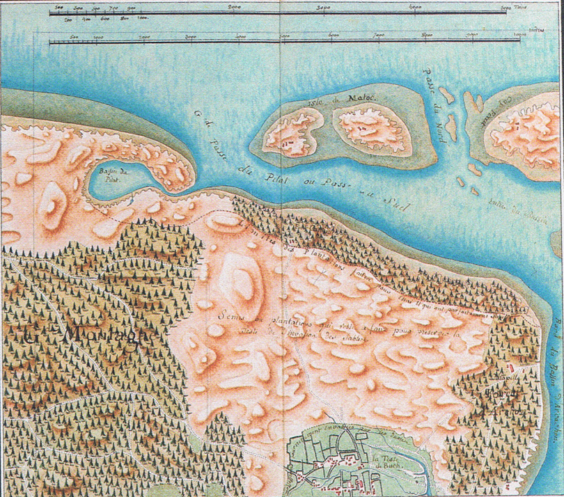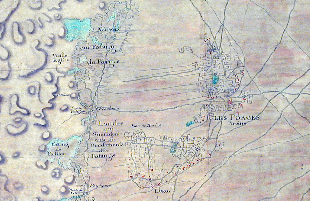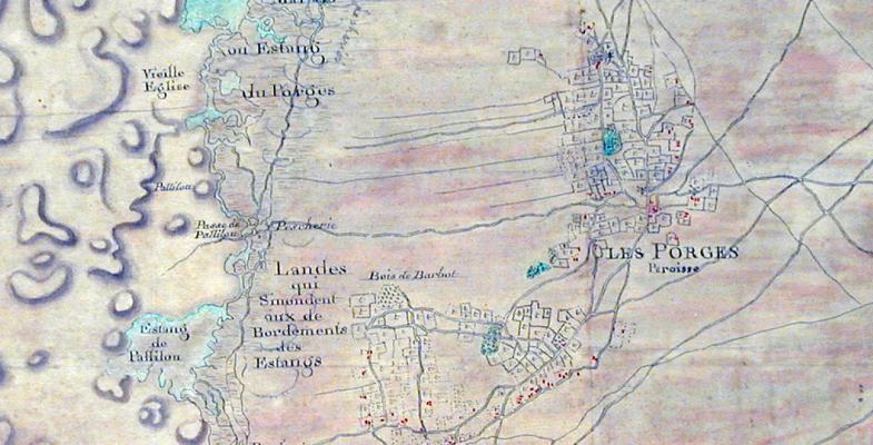 Dans la plupart des cas, toutefois, il est probable que les enrésinements se sont faits par agrégations de parcelles, sans plan préétabli. La recherche, sur ce point, doit encore progresser, mais quoi qu’il en soit, il est certain que ces opérations, en certains lieux, ont progressivement développé une trame plus ou moins continentalisée et étendue dans l’espace. Cette colonisation progressive du pin sur la Lande au cours des XVIIe et XVIIIe siècles s’accompagne d’une prise de conscience de l’étendue du désert landais grâce à deux entreprises majeures de levées cartographiques : celle de Claude Masse en Médoc et Pays de Buch entre 1688 et 1724 et surtout celle de Belleyme, à l’échelle de la généralité de Guyenne, entre 1761 et 1819. Charles-Robert Boutin, administrateur épris de progrès, ardent admirateur de physiocrates, souhaitait connaître l’étendue de ces déserts qu’il rêvait de défricher, ainsi que la situation des dunes et des côtes. Dès le départ, les Landes s’inscrivirent donc au cœur de l’opération. Ces cartes participent de la prise de conscience de la nature, de la qualité et de l’étendue de ces lieux (les habitations, les labours, les cours d’eau, les marais, les bois, les vignes, les chemins sont représentés avec une admirable précision) et accompagnent le développement de l’enrésinement à l’œuvre à cette époque (XVIIe-XVIIIe s.). Partout, néanmoins, les plantations de pins sont freinées par le poids du pastoralisme ainsi que par les réticences des paysans à abandonner leurs vacants.