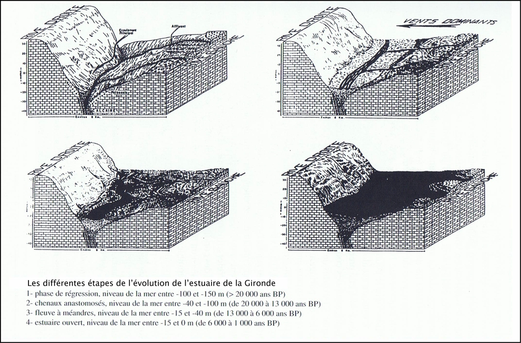 Commencée il y a environ 14000 ans, la transgression flandrienne (remontée durable du niveau marin après la dernière période glaciaire) a amené l’océan de – 80 mètres environ à son niveau actuel vers 3500 ans avant J.-C