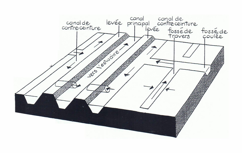 Maîtrisés : les canaux, les crastes et fossés, les digues, les marais, les cours d’eau chenalisés...