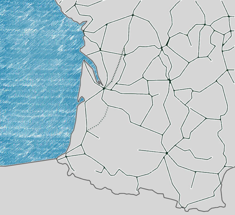 La pinède des Landes girondines, les plages atlantiques, les clairières de maïsiculture, les horizons viticoles, l’estuaire de la Gironde, les quais de Bordeaux,...