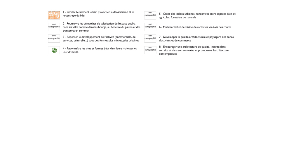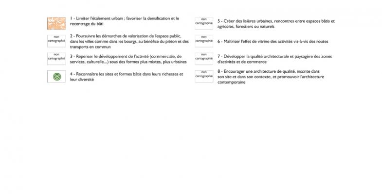 La mise en évidence de ces processus et leur analyse critique conduisent à formuler des orientations possibles. Pour chaque orientation, les objectifs visés sont rappelés et les principes d’aménagement à adopter sont proposés. Il s’agit de principes généraux, susceptibles de servir de guides des bonnes pratiques pour améliorer la qualité dans les nombreux processus à l’œuvre de fabrication des paysages. Ces principes peuvent donc alimenter les débats entre les acteurs sur les niveaux d’ambition à porter à un aménagement ; ils peuvent aussi nourrir les objectifs que se fixent les maîtres d’ouvrage en matière de qualité, les cahiers des charges des consultations, etc.