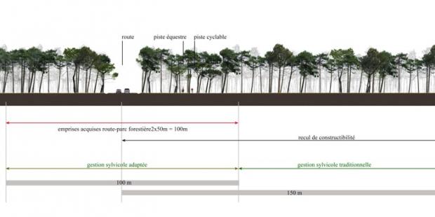 La rédaction, par Brémontier, d’un Mémoire sur les dunes, dressant un bilan très positif de ses essais de plantation de pins est envoyé au gouvernement à Paris en 1796. En 1801, Brémontier est nommé président de la Commission des dunes tandis qu’un arrêté signé des consuls de la République initie la fixation systématique des dunes du littoral des départements de la Gironde et des Landes. Cette politique sera suivie jusqu’en 1867 et verra la plantation de 90 000 hectares de pins le long du cordon littoral. La révolution technologique des chemins de fer, qui s’opère au même moment, modifie les données de l’équation posée par Guillaume Desbiey s’agissant de l’absence de voies de communication. L’ouverture de la ligne de Bordeaux à La Teste par les frères Pereire, dans les années 1840, marque le développement d’un vaste réseau départemental, et ouvre le boisement des terres pauvres qui s’affirme alors, au nom de l’intérêt national, comme une priorité de l’aménagement du territoire.