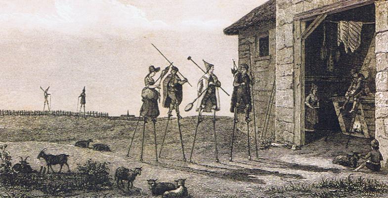 « Il faudra bien du temps avant que la lande ait cessé d’offrir au regard attristé, pendant l’été, la nudité des déserts d’Afrique, pendant l’hiver, l’humide et froide surface des marais de la Sibérie », écrit ainsi en 1855 le géographe Malte-Brun. La définition de cet ethnotype landais (le quadrumane) figure locale du primitif universel, associé à la réprobation de lieux associés à l’Ancien Régime participe de la construction du récit historique et géographique de l’Etat Nation.