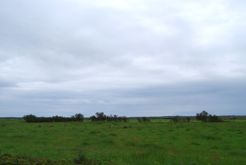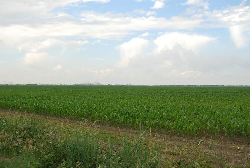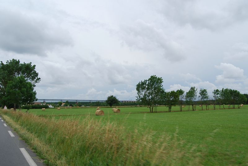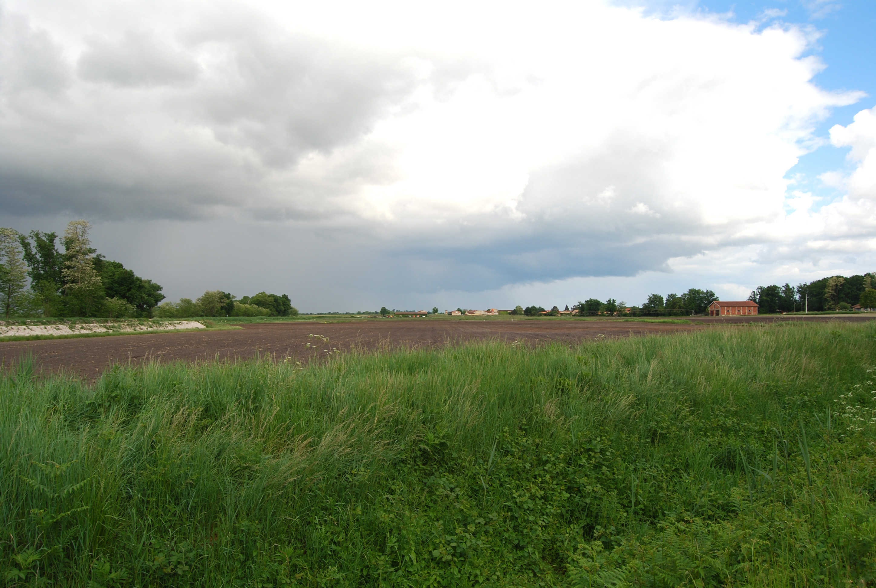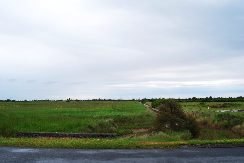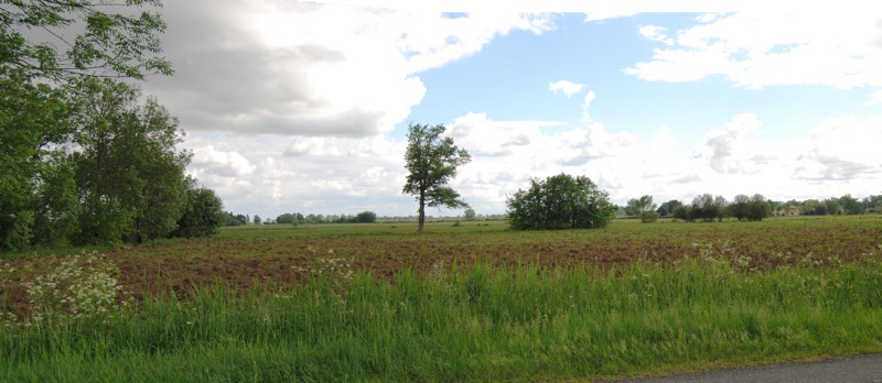 A l’abri des digues, de vastes parcelles marécageuses sont exploitées en cultures (maïs) ou en prairies, déployant leurs palettes vertes sur de grands espaces. Bien que l’on n’y trouve aucun boisement d’envergure, les arbres sont très présents dans ces marais, bordant les parcelles et les cours d’eau en rideaux denses de feuillus, superposant un horizon sombre aux cultures très ouvertes. Ces haies longent parfois aussi les voies de communication, dessinant alors des routes en tunnels végétaux opaques. Bien que très peu nombreuses, on trouve également quelques vignes, sur les bordures nord et ouest de l’unité, les premières en aval de Bordeaux. L’origine artificielle de ces terrains se traduit aujourd’hui par une topographie tout à fait particulière. En effet, les terres les plus basses sont les plus éloignées des berges, la digue ayant maintenu autour d’elle un bourrelet de terrain plus élevé. Cette cuvette, au réseau de drainage bien plus dense mais toujours plus humide malgré tout, a développé un sol tourbeux, distinct des terrains en bord de fleuve. L’implantation du bâti s’en ressent également : l’urbanisation (très limitée) s’est concentrée derrière la digue, au long de la D209, tandis que les zones inondables restent presque désertes.
