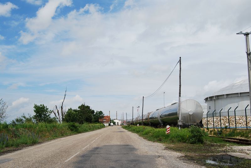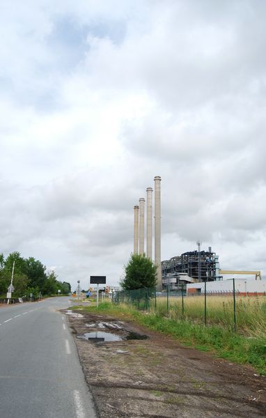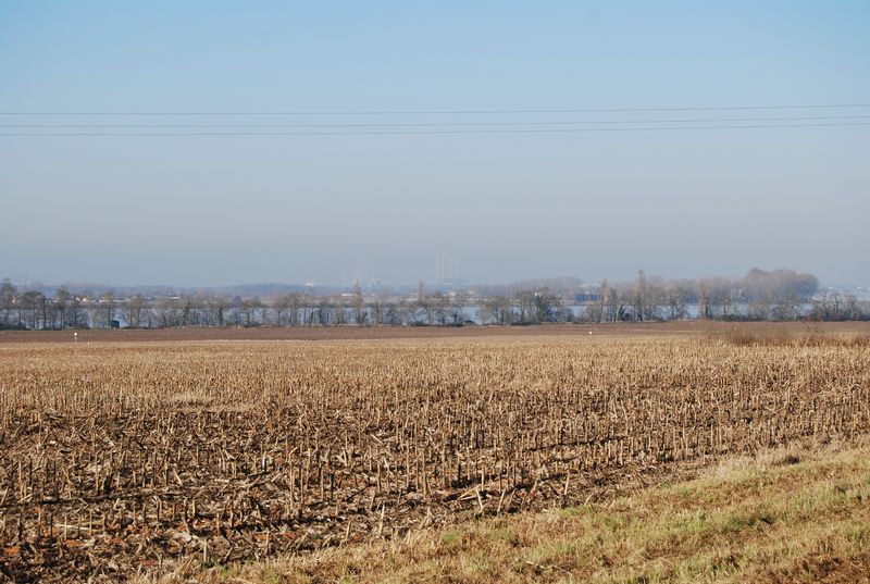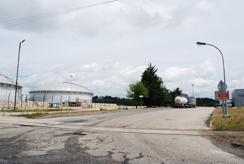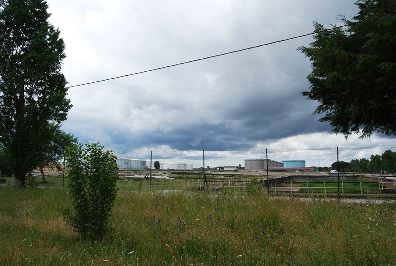 Parallèlement à la rive droite de la Garonne, une voie ferrée s’étire jusqu’à la pointe, desservant ainsi les multiples complexes implantés au long du fleuve. En effet, si la partie sud de cette berge reste dévolue à l’habitat - mises à part quelques zones d’activités - le nord de la pointe est le domaine privilégié des emprises industrielles, qui profitent à la fois de la proximité de Bordeaux et de deux rives navigables. Séries de cuves de stockages, pipelines, cheminées ou hangars se succèdent, parfois accompagnés par des haies et alignements plantés ou spontanés, parfois en vis-à-vis avec de larges espaces agricoles ouverts. Autour du point de repère que forment les cheminées de la centrale thermique, les lignes à haute tension rayonnent à travers la presqu’île, imposant cette présence dans la majorité de ses paysages. L’extrémité nord est totalement annexée par l’ancienne raffinerie de pétrole (en activité de 1939 à 1987) qui s’étend sur près d’un kilomètre et demi. Cette occupation empêche toute approche du point de confluence, alors que cette pointe représente un endroit stratégique pour la perception et la compréhension des paysages de l’estuaire, offrant notamment d’amples ouvertures sur l’estuaire naissant et les vifs coteaux viticoles de la rive droite. Certaines de ces industries bénéficient d’un accompagnement végétal, qui peut parvenir à assurer l’équilibre avec les paysages du Bec d’Ambès, mais d’autres s’inscrivent à l’horizon de vastes parcelles ouvertes, s’imposant visuellement avec un impact hors d’échelle par rapport à l’importance de leur emprise. L’inscription de ces bâtiments dans leur site demande un travail sur le potentiel végétal de leurs abords, et l’accès par le public de certains de ces sites doit aussi être pensé selon leurs contraintes particulières (zone SEVESO, pollution des sols). Les gravières (au centre et au sud-ouest de la presqu’île) participent aussi de cette nature industrielle, qu’elles soient encore en activité ou non. Dans le premier cas, leurs équipements d’extraction et de transport sont des éléments constitutifs du paysage, au même titre que ceux des complexes du nord, et doivent donc être accompagnés et inclus dans leur environnement. Dans le second cas, elles sont souvent transformées en équipements de loisirs : les nouveaux aménagements devraient alors tirer parti des paysages préexistant alentour, afin de s’intégrer dans l’histoire et les structures de ce territoire particulier pour les mettre en avant.