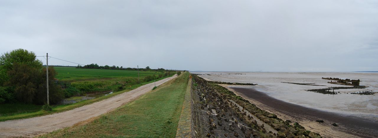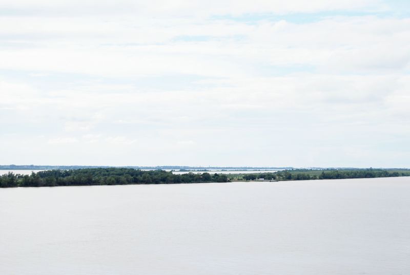 En rive gauche, culminant à peine à 45 m, les horizons du Médoc ne forment qu’une mince bande sombre sur les eaux. En rive droite, si les collines calcaires présentent des "falaises de Gironde" bien lisibles au sud de Blaye, surplombant les eaux d’une cinquantaine de mètres, les marais de Braud-et-Saint-Louis vers l’aval restent aussi bas que l’estuaire, leur présence étant uniquement signalée par les digues.