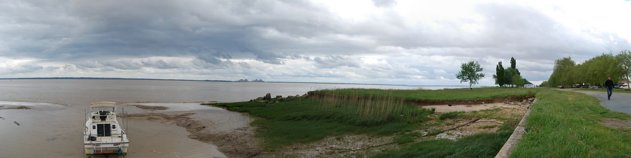 L’estuaire de la Gironde, en mêlant les eaux douces des fleuves Garonne et Dordogne et les eaux salées de l’Atlantique, dessine un paysage particulièrement original, à la fois terrestre, fluvial et marin. Marin par ses dimensions : l’ampleur de l’estuaire dialogue ici avec l’immensité du ciel, sans rival de taille pour occuper l’horizon. Terrien par les marais : si les rives sont lointaines et discrètes, elles sont néanmoins travaillées et habitées par les hommes, qui ont petit à petit élargi leur emprise en gagnant des terres sur cette mer intérieure. Fluvial par la couleur brun rouge de ses eaux, par les villes et bourgs portuaires qui ponctuent ses rives, par ses activités de pêche et de navigation.