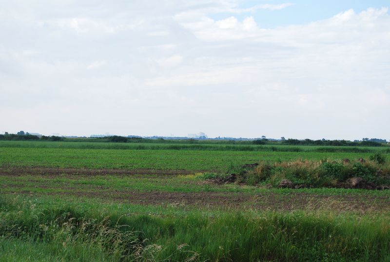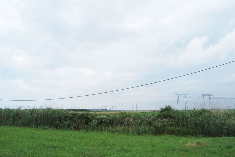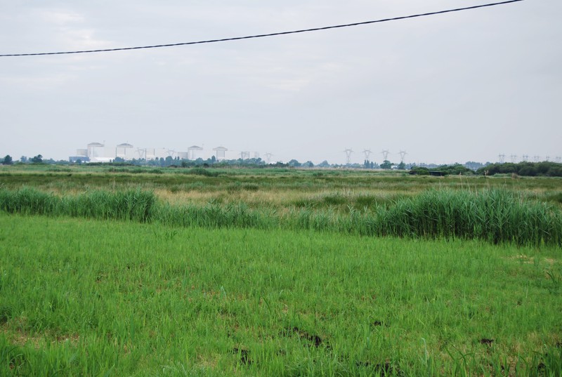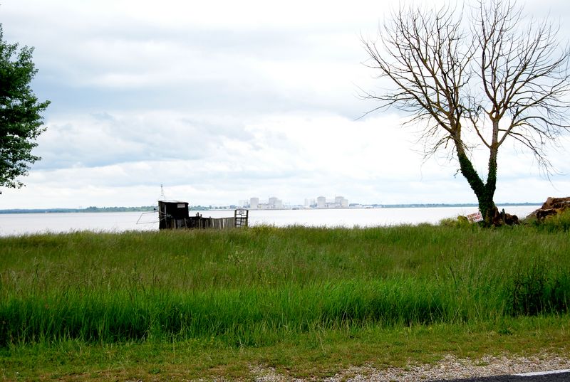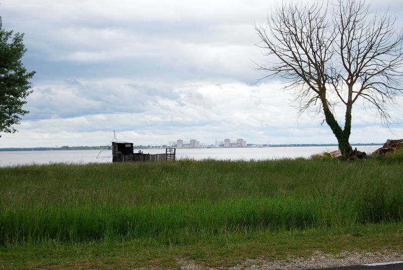 Masse imposante dominant l’horizon, la centrale nucléaire du Blayais - mise en service en 1981 - est la marque la plus récente de l’emprise de l’homme sur ce territoire. Sa haute silhouette se perçoit depuis une grande partie du marais, mais aussi depuis la rive médocaine au-delà de l’estuaire, elle forme un point de repère dans ces paysages de grandes étendues, pauvres en éléments verticaux notables. Elle souligne notamment la limite entre terres et eaux, imperceptible depuis les polders. Mais sa présence se prolonge également dans trois directions par les imposantes lignes à haute tension distribuant la production électrique vers le nord, l’est et le sud-est ; celles-ci parcourent le paysage et s’imposent à la vue, quasi-omniprésentes dans ces pays très dégagés.