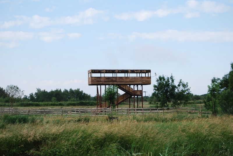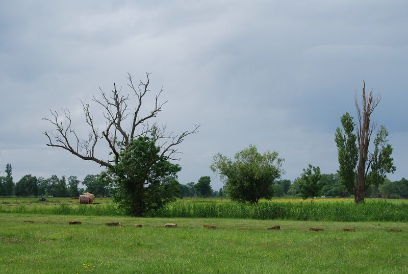 Ces terres artificielles constituent des espaces sans limites, d’une horizontalité parfaite (de un à deux mètres d’altitude), et les arbres sont peu nombreux dans ce paysage : quelques friches boisées à l’est, des sujets isolés ou de rares alignements, et peu de ripisylves. Tout élément vertical prend donc ici une place importante, à la fois point de repère et facteur de variété. D’autant plus qu’ils aident à appréhender ce territoire, les alignements soulignant les canaux tandis qu’une ripisylve fournie surplombe la digue ouest, en bordure de l’estuaire.