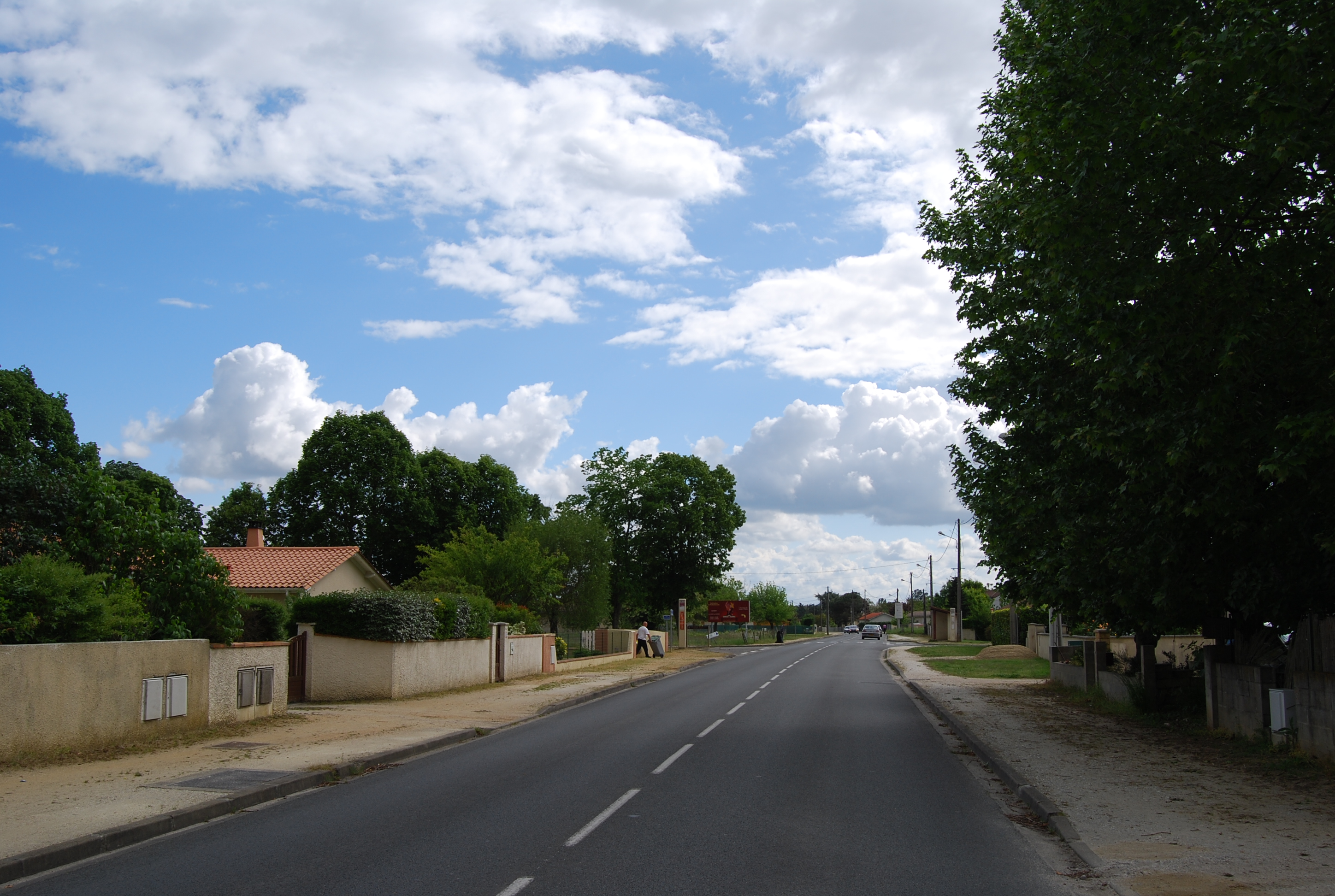 Tandis que ces divers équipements se succèdent sur la rive estuarienne de la ville, le bâti se répartit au long de la lisière forestière, se mêlant plus ou moins aux arbres. Le centre-bourg est en effet très réduit, et les habitations s’égrènent au long de la D1, souvent accompagnées d’une végétation importante qui forme des ambiances boisées. Les coupures d’urbanisation laissant passer le regard vers le sud, sur les marais du Conseiller et leurs vastes espaces dégagés, permettent de percevoir la finesse de cette frange végétale, qui longe simplement la route.