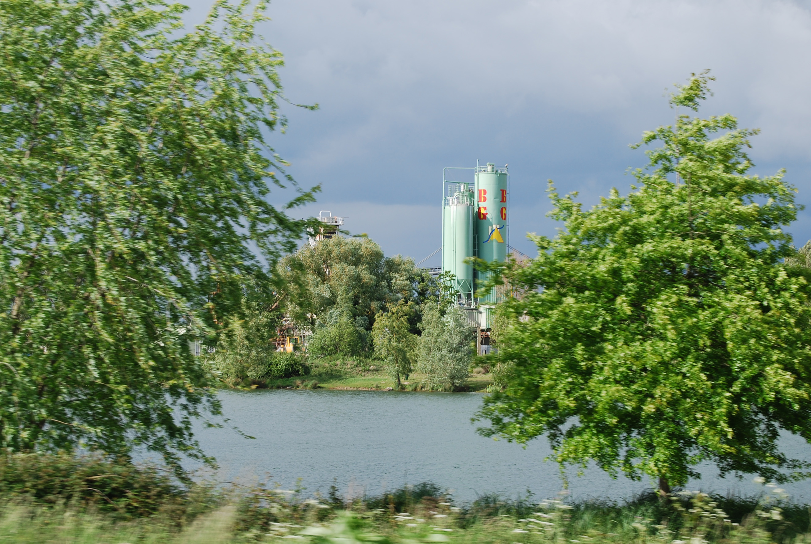 L’inscription des activités industrielles dans le paysage : accompagnement végétal des installations lourdes, aménagement des lisières bâties, inscription des étangs issus de l’exploitation des gravières dans le paysage, développement d’une image de "nature industrielle".