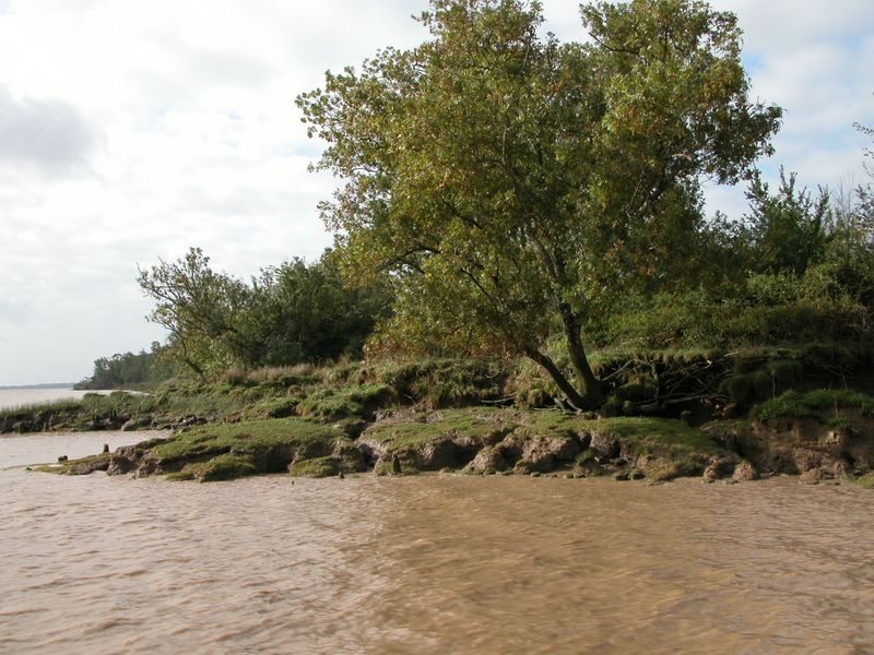 Qu’elles soient formées d’une digue artificielle, d’une falaise calcaire ou d’une frange marécageuse, les berges de la Gironde sont, le plus souvent, accompagnées d’une présence arborée plus ou moins marquée. Si aucune forêt alluviale ne s’étend sur les rives, ripisylves et alignements soulignent néanmoins les limites du domaine terrien, tandis que la zone de transition s’étire sur des vasières rougeâtres, luisantes et grasses. Slikke et schorre étendent leur végétation spécifique, dessinant des entre-deux qui enrichissent et complexifient les paysages.