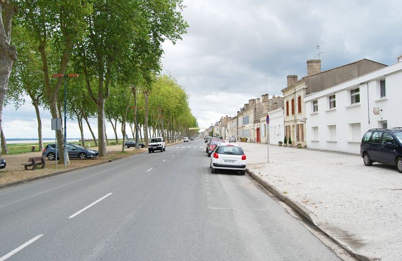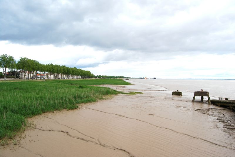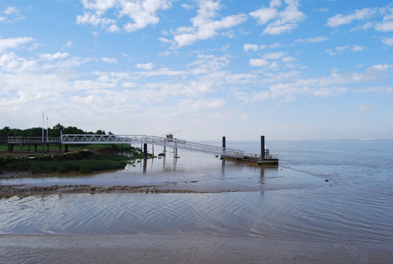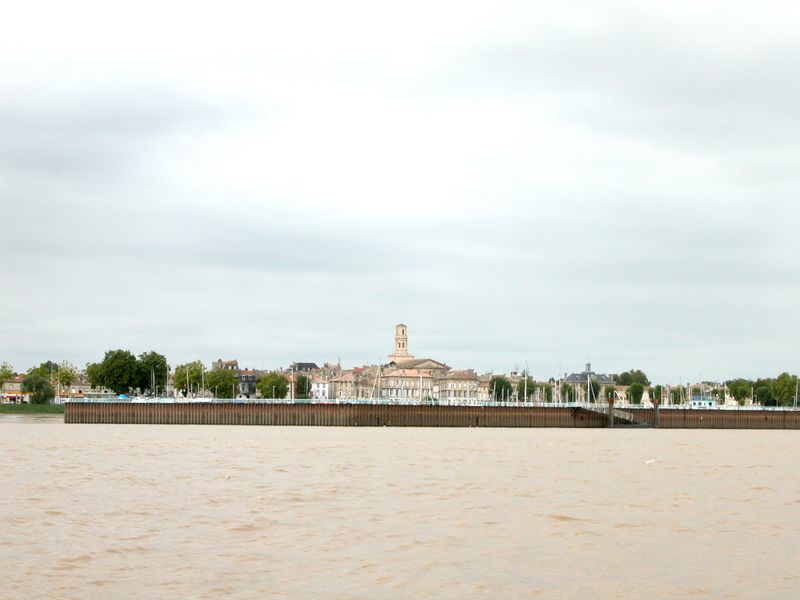Les ports urbains, comme Blaye ou Pauillac, participent des paysages de la Gironde de façon plus manifeste : façades bâties urbaines ou quais de pierre dessinent des rencontres frontales entre villes et estuaire. La présence marquée d’arbres d’alignement enrichit encore cette interface, en révélant son potentiel en tant qu’espace public. Le port de plaisance de Pauillac, vu depuis l’estuaire, nuit en partie à cette image : les longues berges herbeuses plongeant dans les eaux sont occultées par les hautes palplanches métalliques de la jetée.